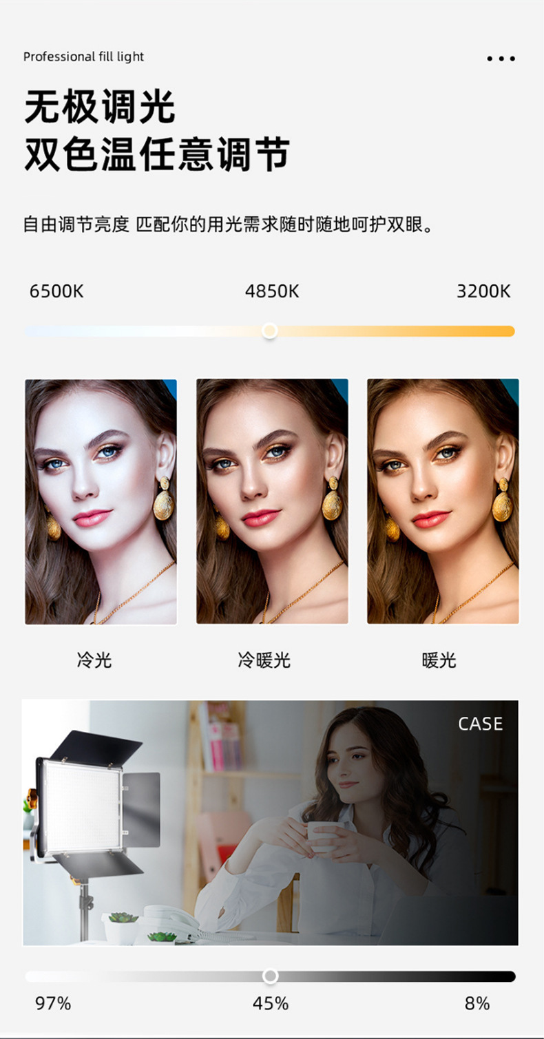 W480S 사진 태블릿 라이트, 휴대폰 셀카 라이브 방송 보조 조명, 특수 비디오 촬영 조명, LED 듀얼 색온도 조절 가능스토어 가기