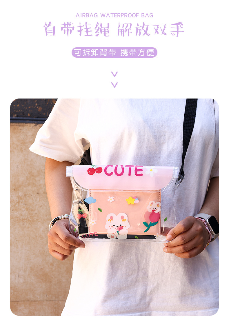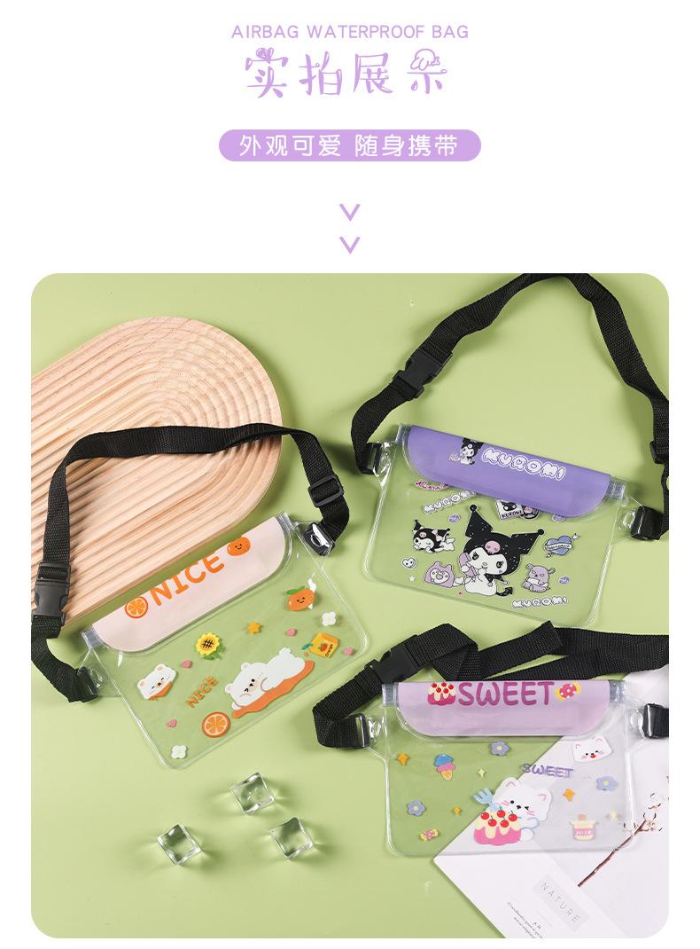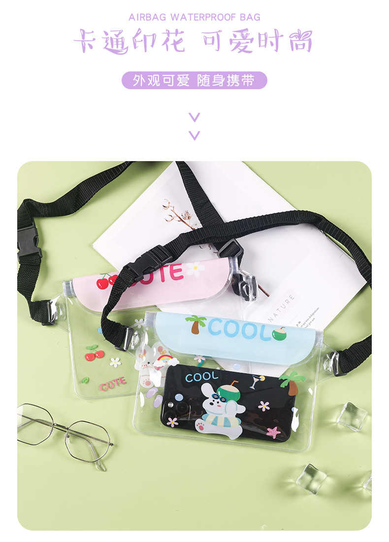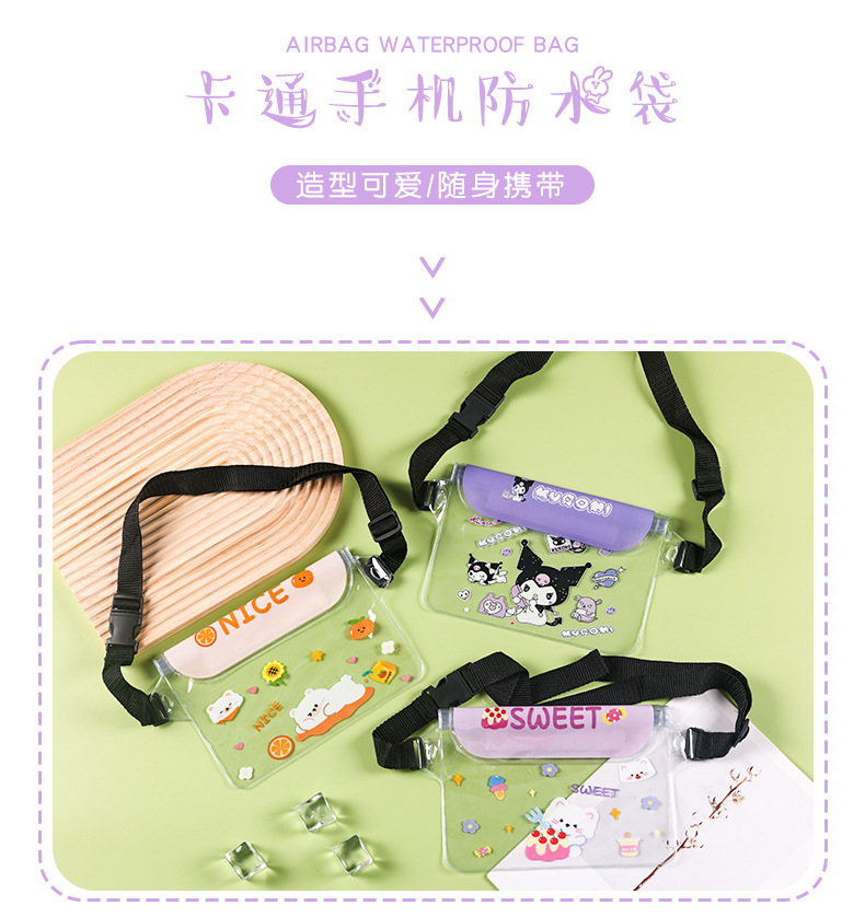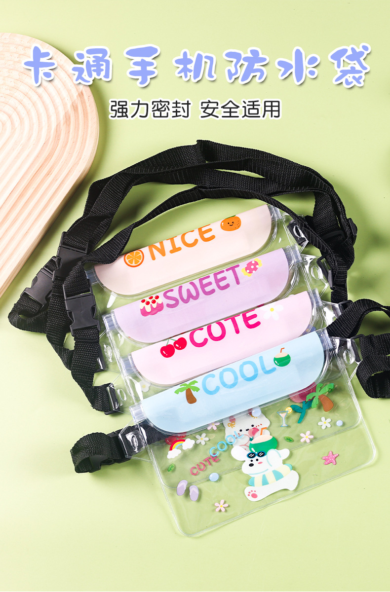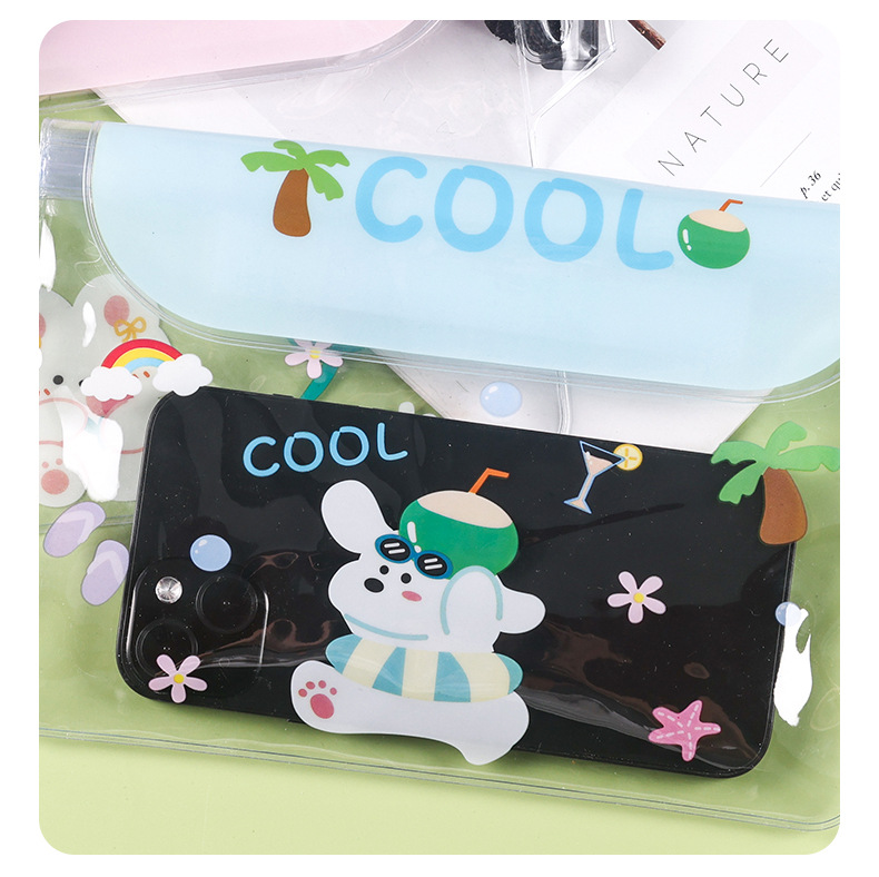 귀여운 방수 휴대 전화 가방 만화 휴대 전화 방수 허리 가방 터치 스크린 수영 보관 가방 표류 여행 다이빙 가방