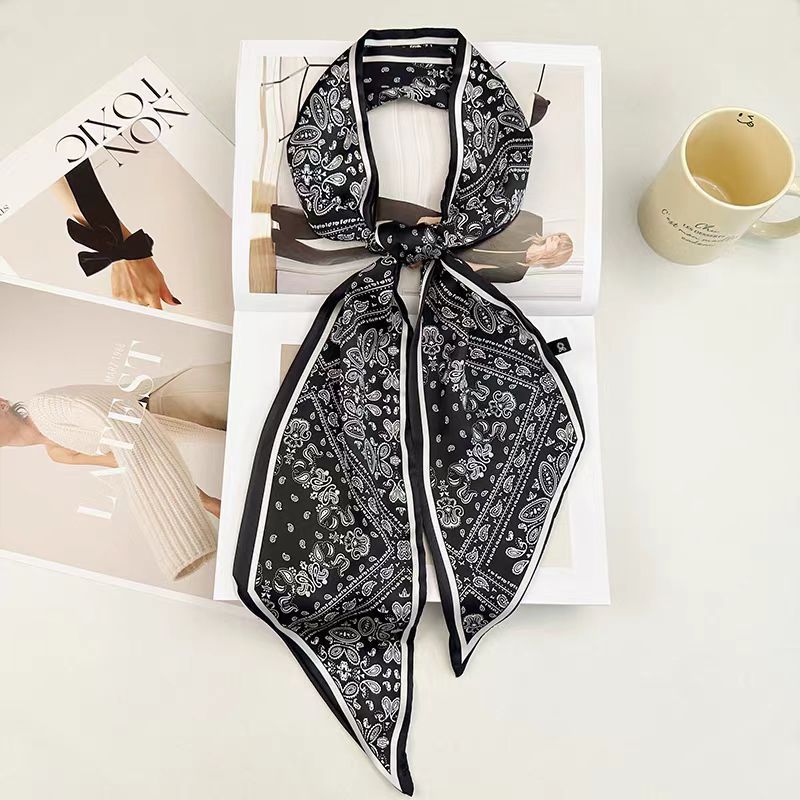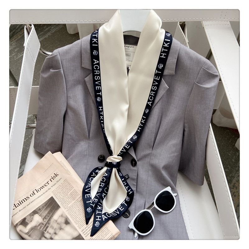 빈티지 편지 사이드 실크 스카프 세련된 단색 모든 경기 스카프 헤어 벨트 넥타이 가방 장식 전문 여성 긴 작은 실크 스카프