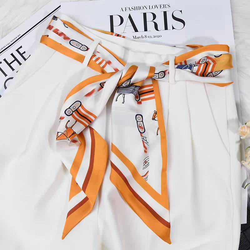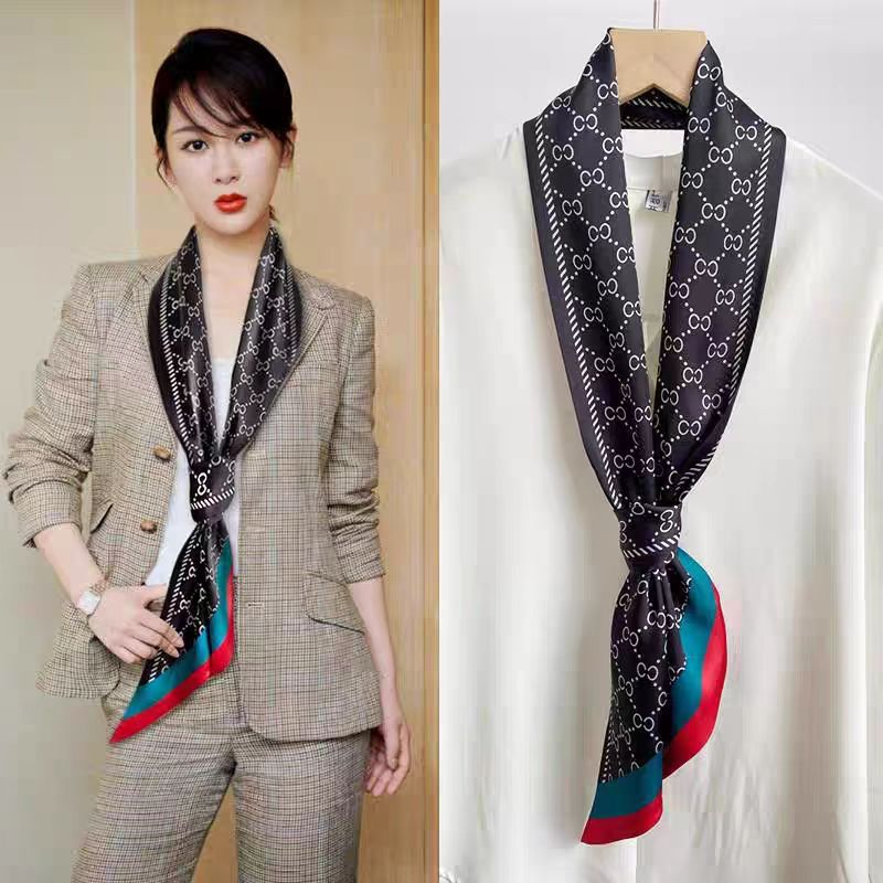빈티지 편지 사이드 실크 스카프 세련된 단색 모든 경기 스카프 헤어 벨트 넥타이 가방 장식 전문 여성 긴 작은 실크 스카프스토어 가기