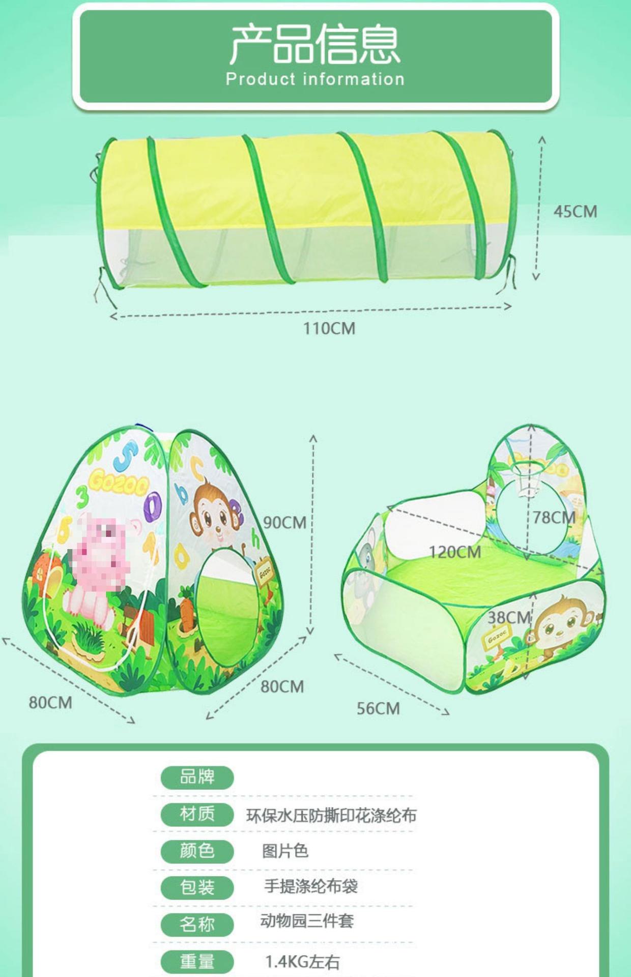 • [동물원] 3-in-1 게이밍하우스 + 공 200개, 새로운 스타일에는 터널 매트가 함께 제공됩니다.