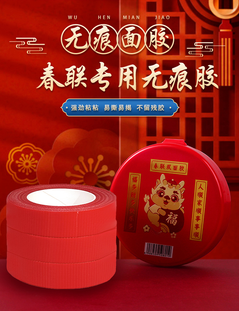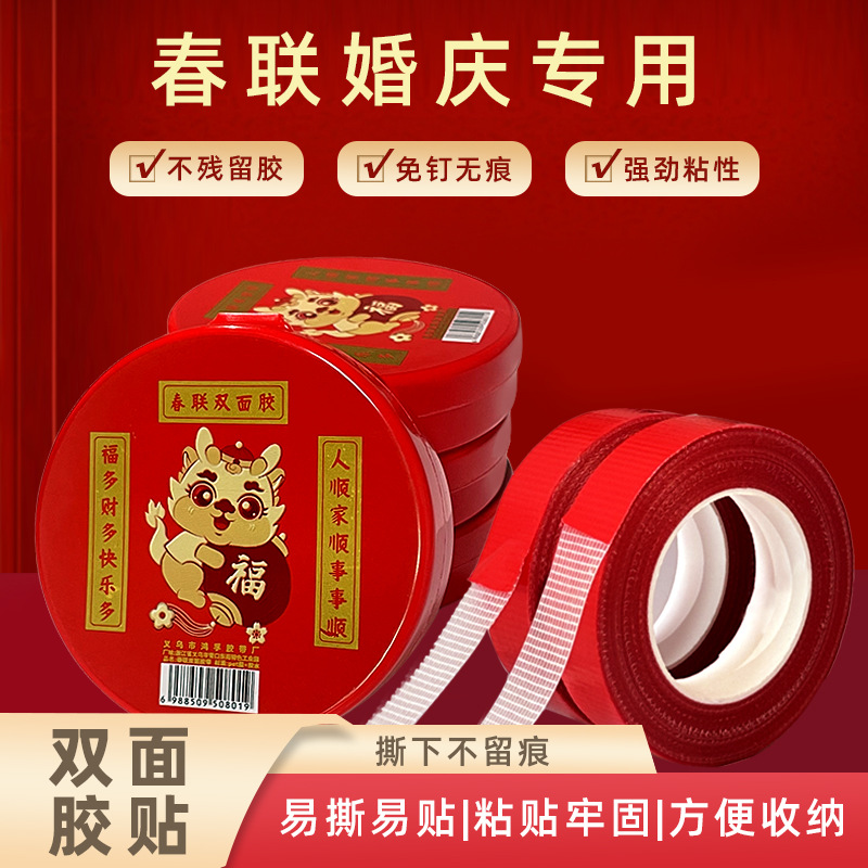2024新款网格春联双面胶婚庆福字贴画无痕贴高粘可手撕对联双面胶스토어 가기