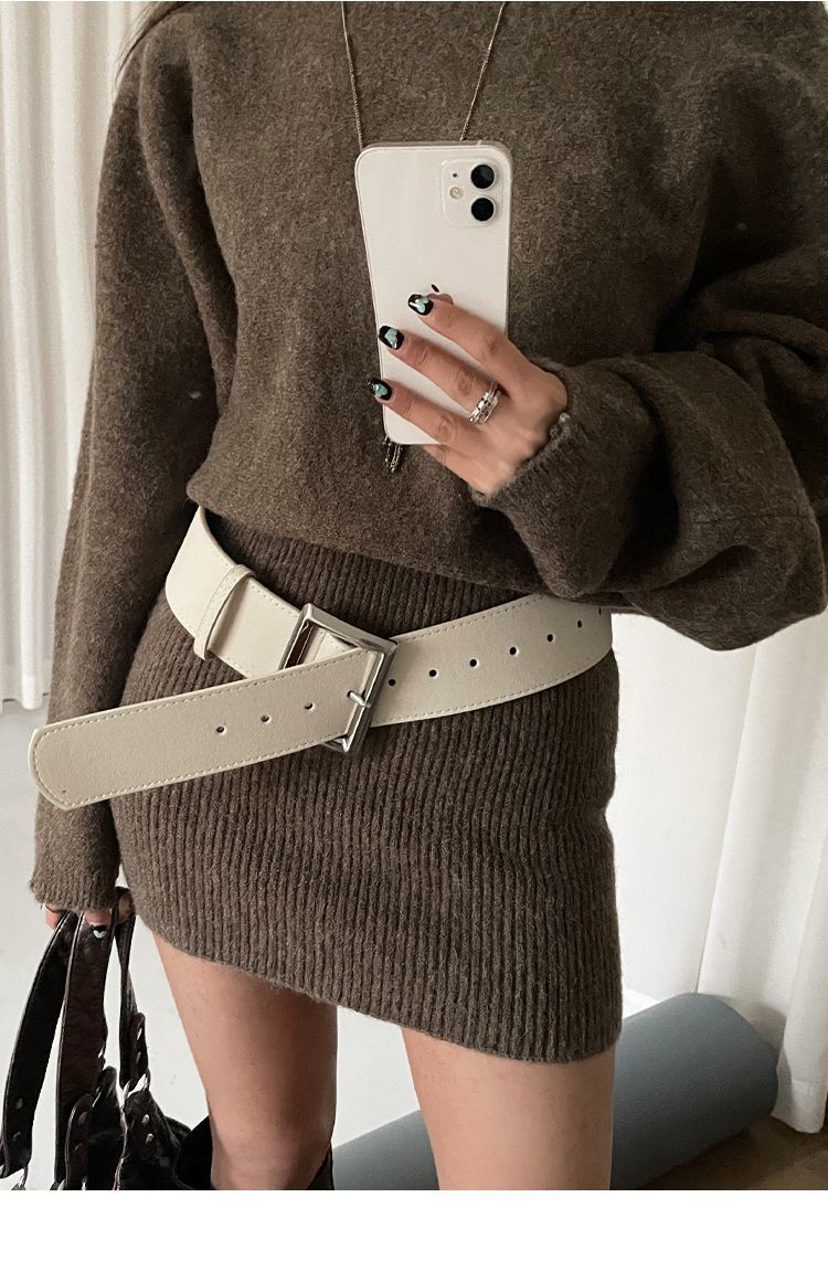 봄과 여름 새로운 한국 스타일 여성 와이드 벨트 안티 벨벳 모조 스웨이드 스퀘어 핀 버클 벨트 거들 코트 심플