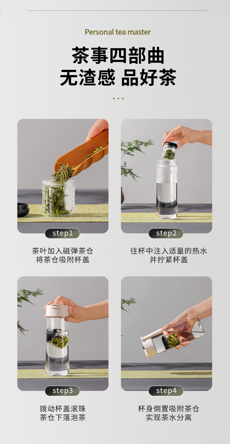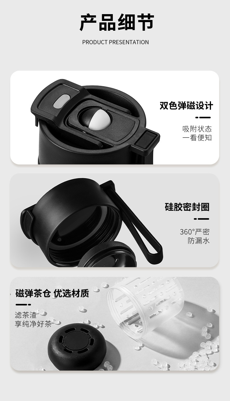 새로운 비즈니스 탄성 뚜껑 자기 탄성 버블 티 컵 차 분리 휴대용 스포츠 고온 저항 남성과 여성의 트리 탄 물 컵