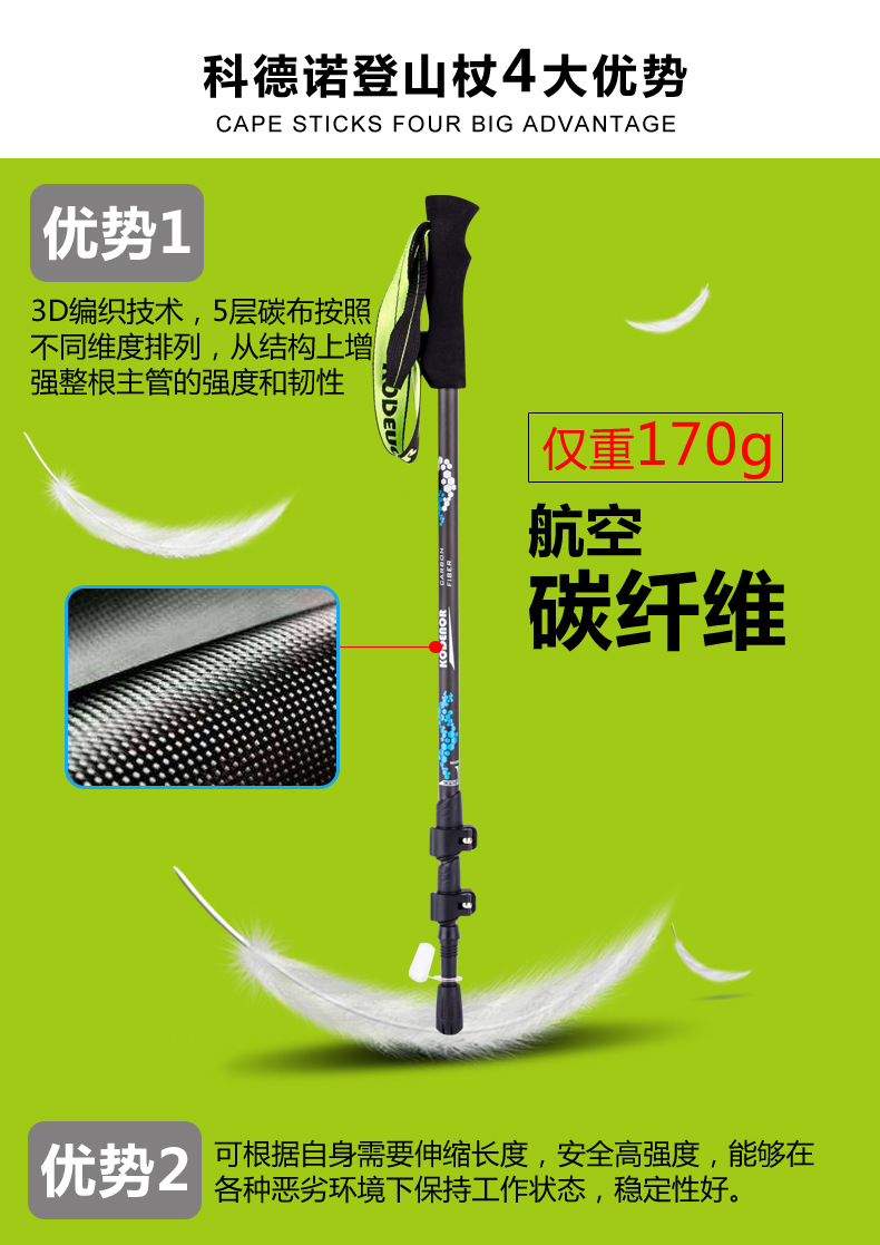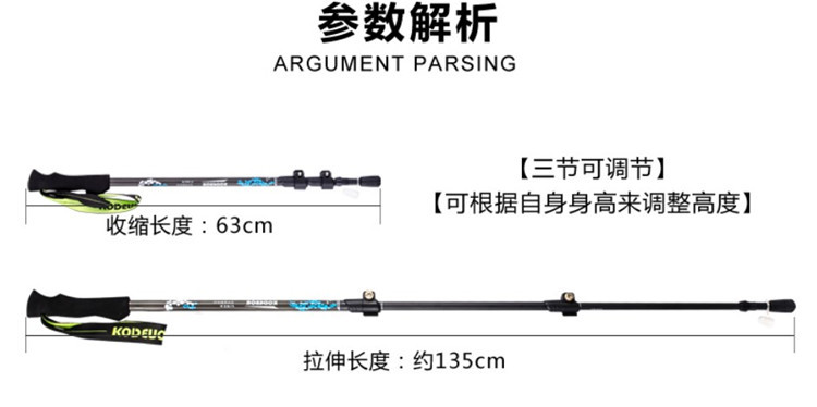 탄소 섬유 등반 스틱 탄소 망원경 워킹 스틱 남성과 여성을위한 전문 야외 하이킹 스틱 T 핸들 외부 자물쇠 등반 스틱