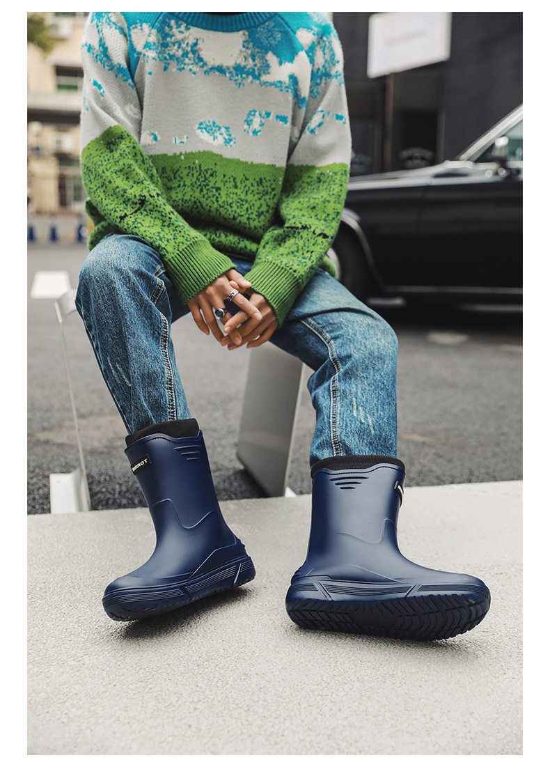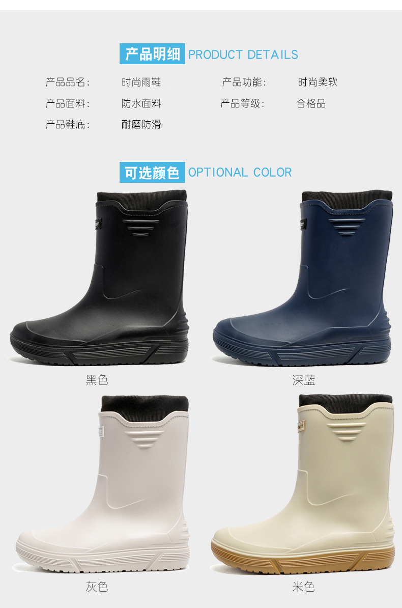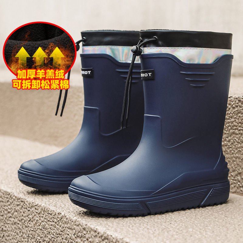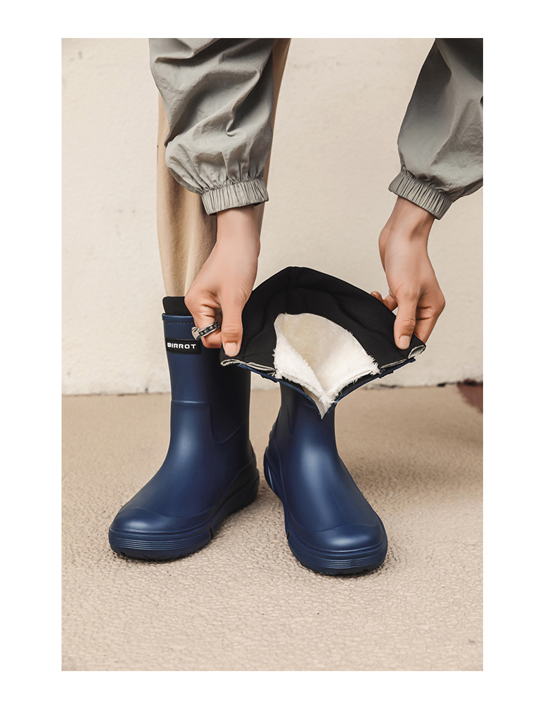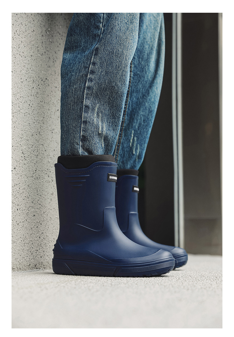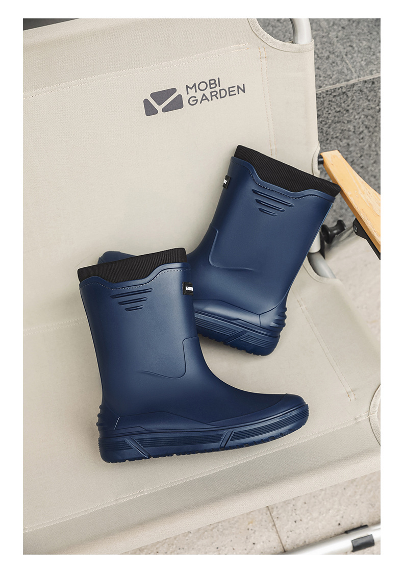 솔리드 컬러 올매치 남성용 미드 배럴 비 신발 사계절 야외 코튼 비방비 미끄럼 방지 고무 신발 두꺼운 밑창 등산 워터 슈즈