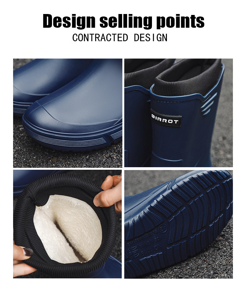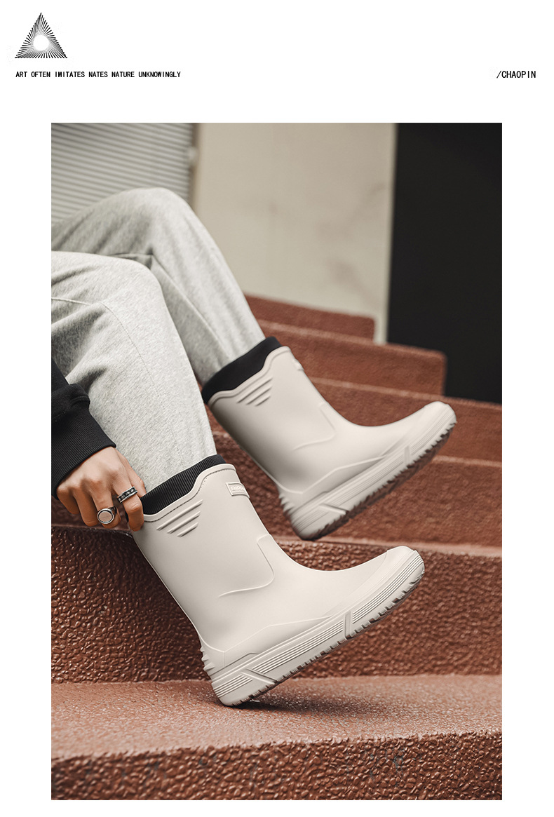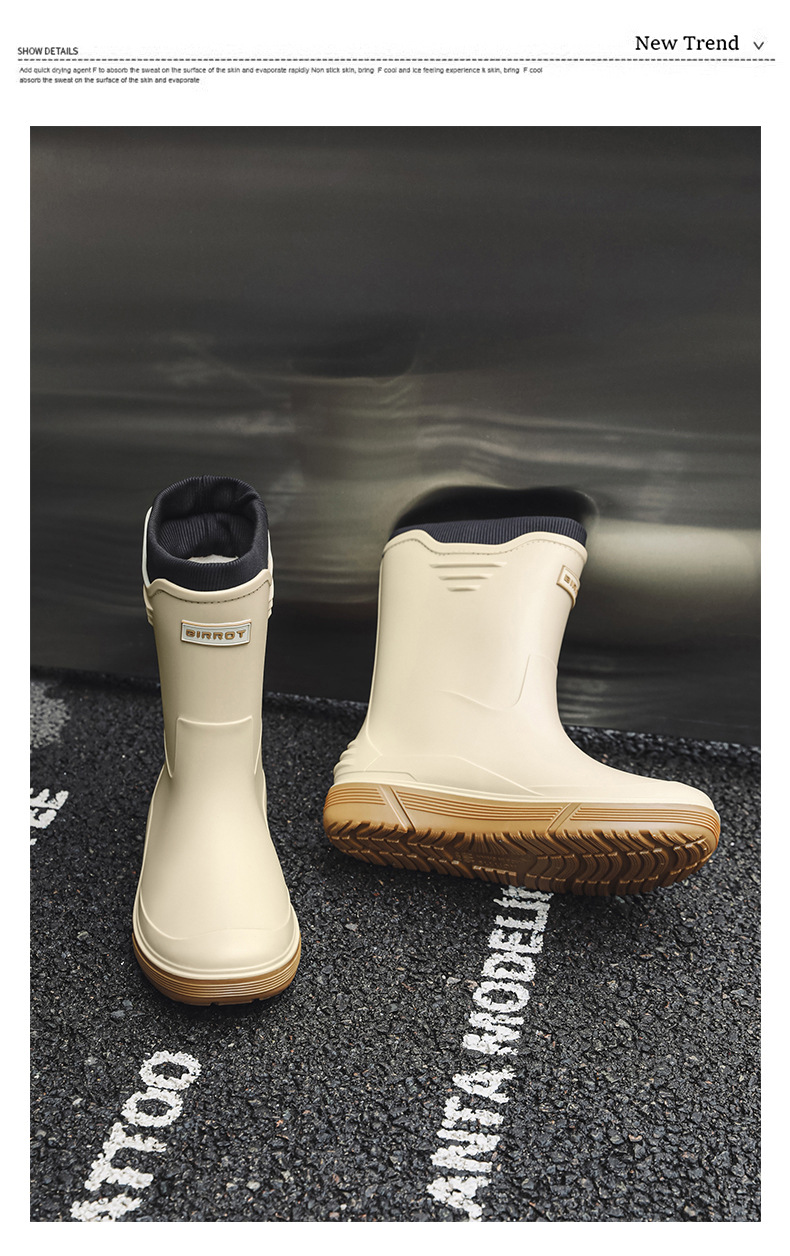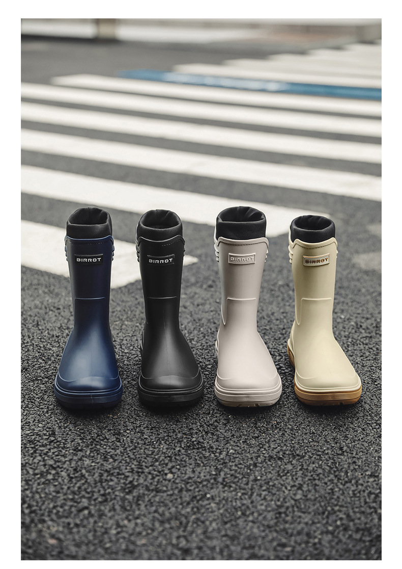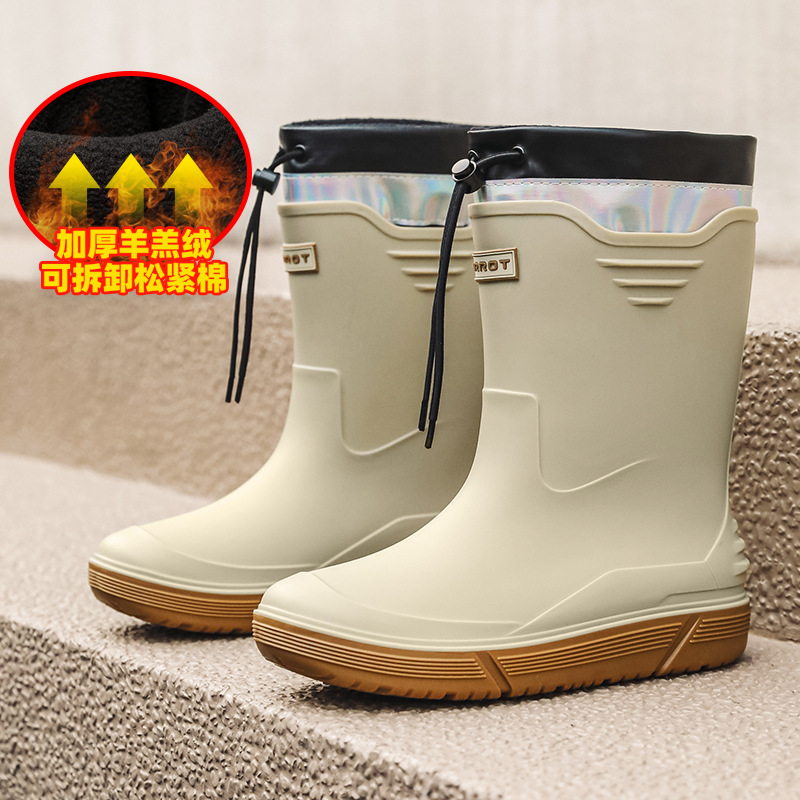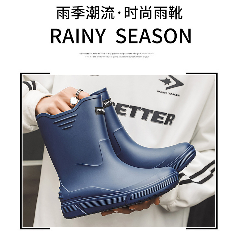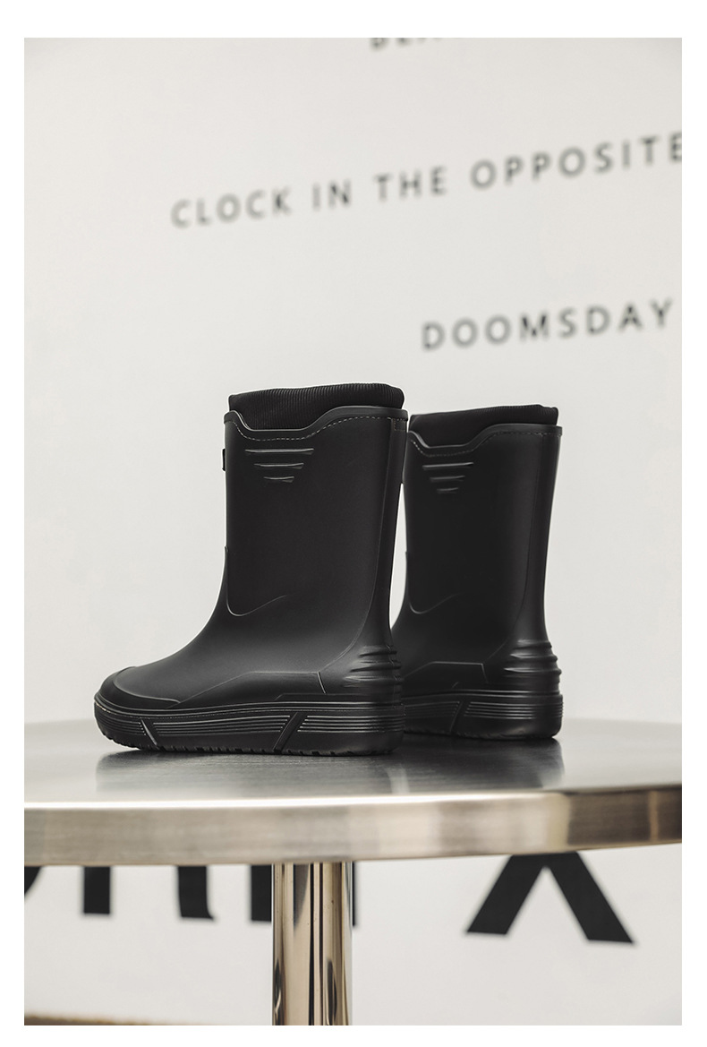 솔리드 컬러 올매치 남성용 미드 배럴 비 신발 사계절 야외 코튼 비방비 미끄럼 방지 고무 신발 두꺼운 밑창 등산 워터 슈즈
