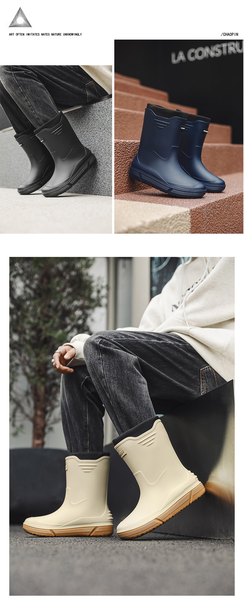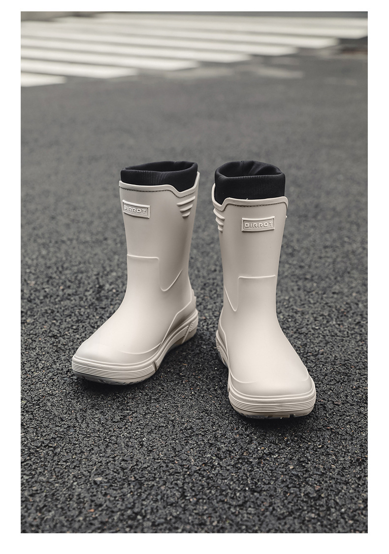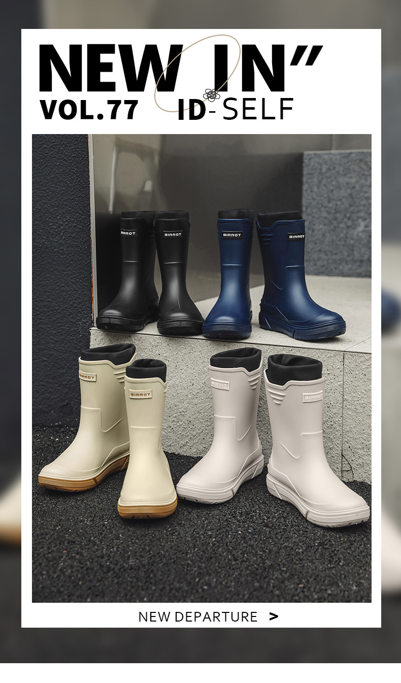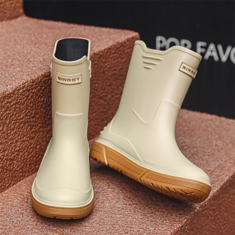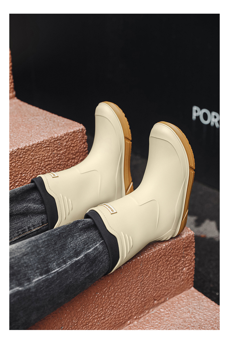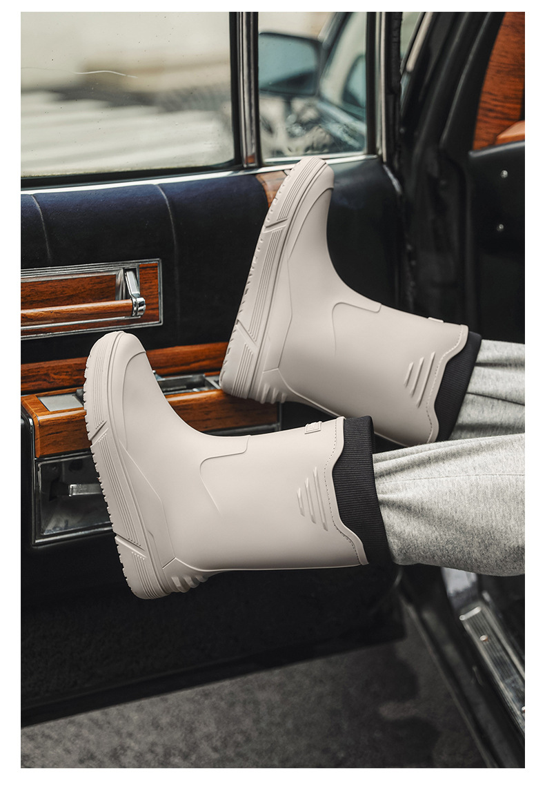 솔리드 컬러 올매치 남성용 미드 배럴 비 신발 사계절 야외 코튼 비방비 미끄럼 방지 고무 신발 두꺼운 밑창 등산 워터 슈즈