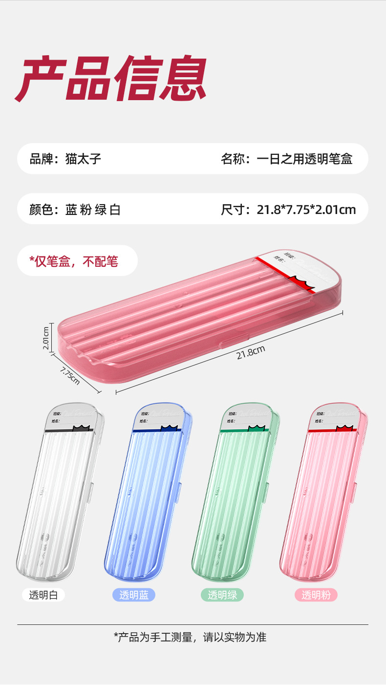 초등학생을위한 프린스 고양이의 1 일 투명 문구 상자 다기능 간단한 경량 연필 케이스 연필 가방 도매