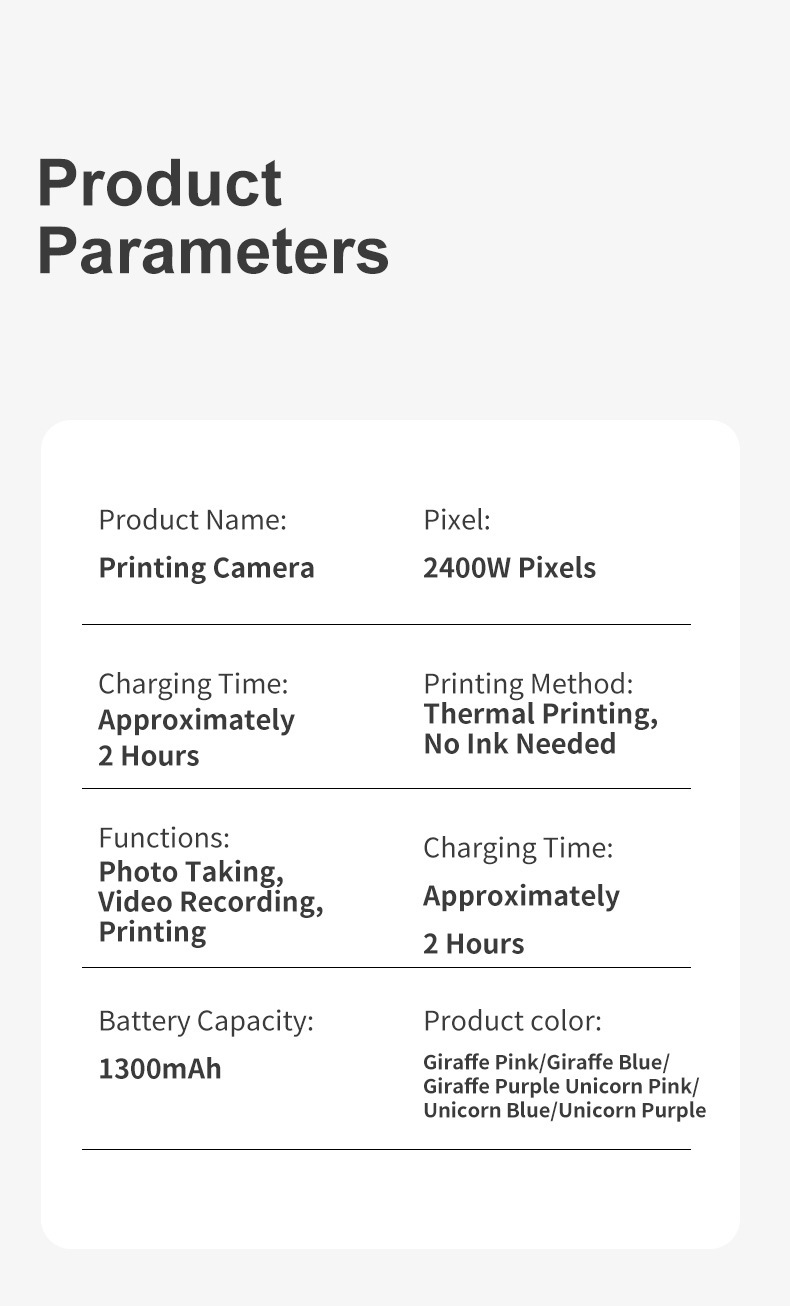 • 폴리 블루 - HD 듀얼 카메라 - 인쇄 용지 2롤이 기본으로 제공됨(메모리 카드 없음)