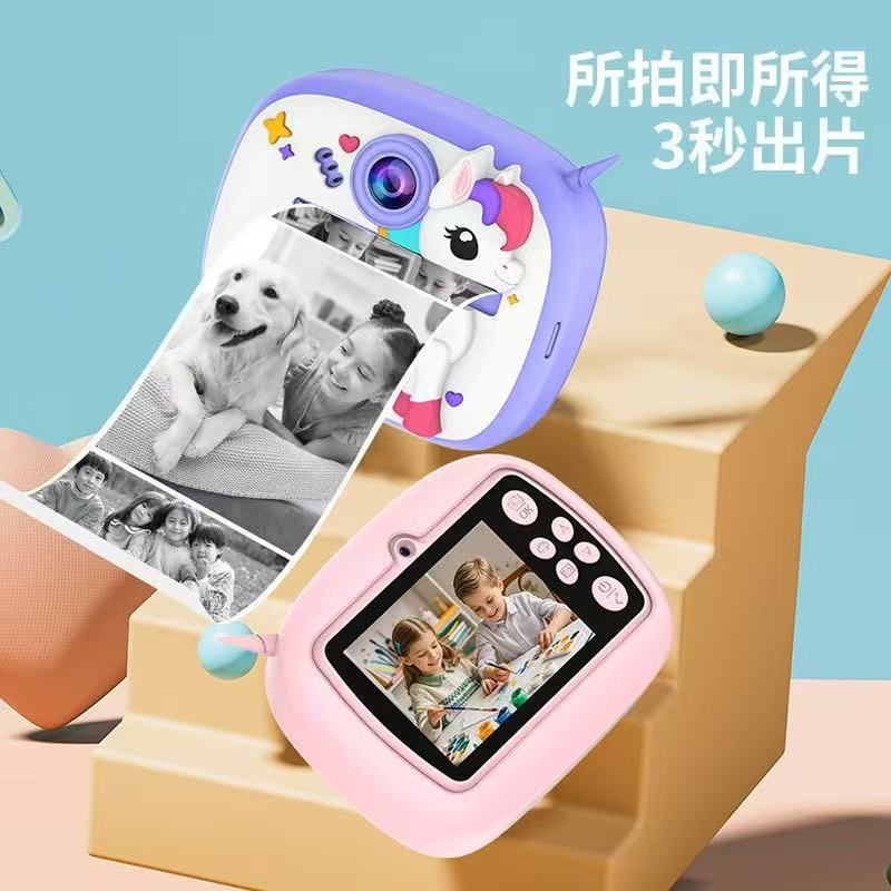 새로운 국경 어린이 카메라 HD 전면 및 후면 이중 사진 폴라로이드 카메라 만화 폴라로이드 인쇄 카메라스토어 가기