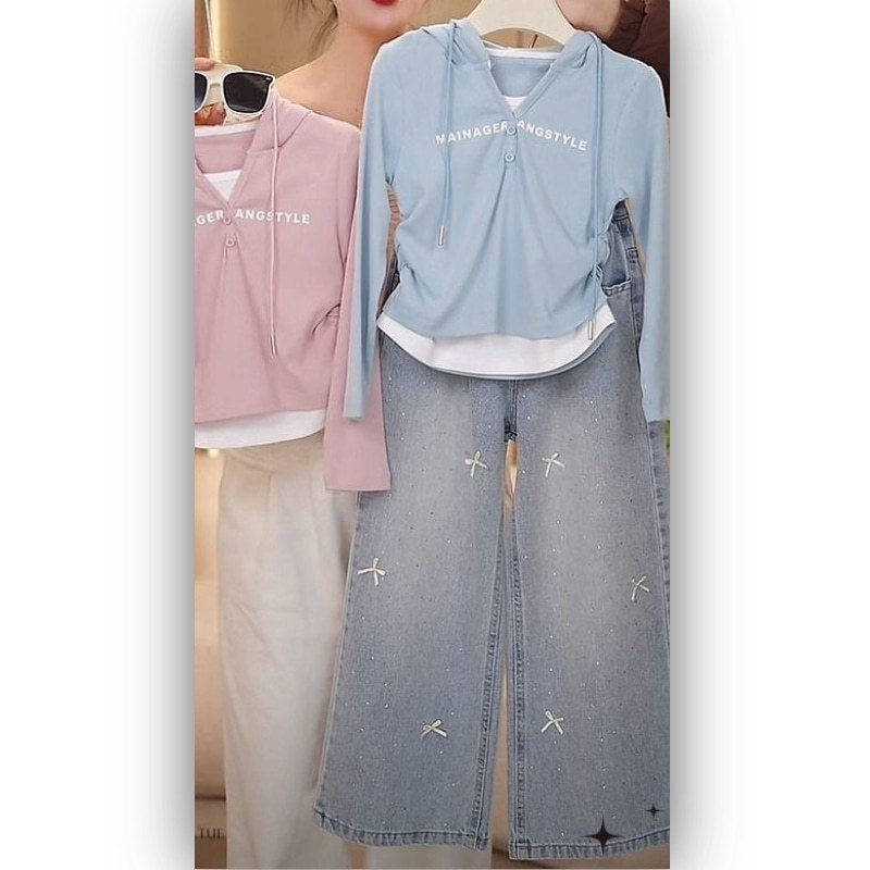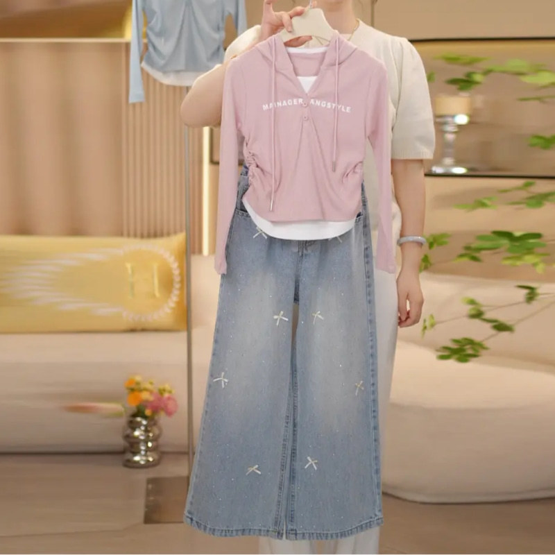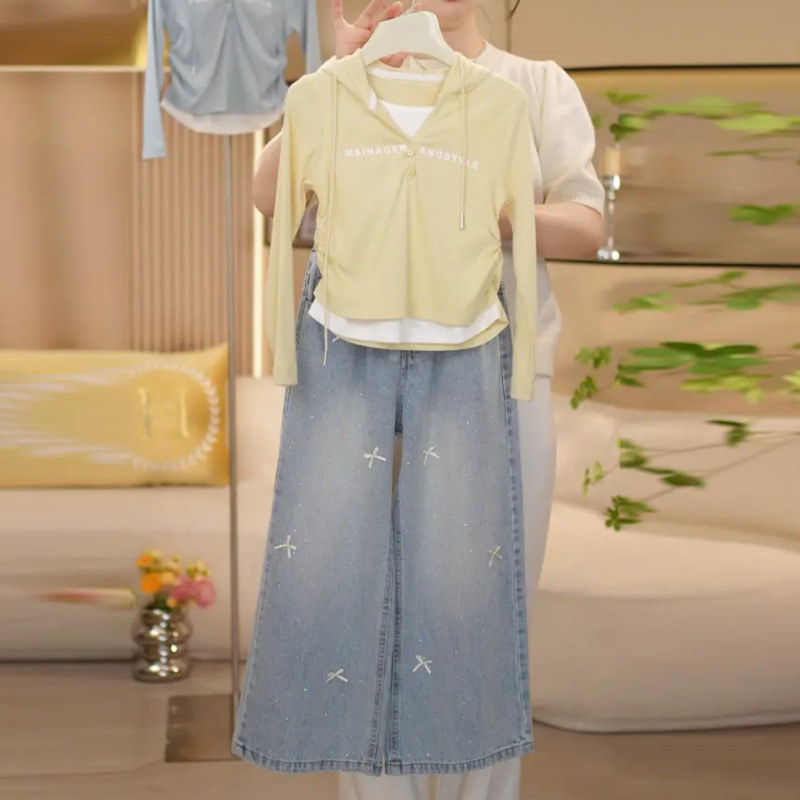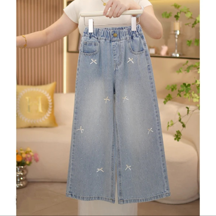 소녀 바지 봄과 가을 2025 새로운 어린이 서양식 청바지 소녀 스트레이트 바지 봄 캐주얼 바지스토어 가기