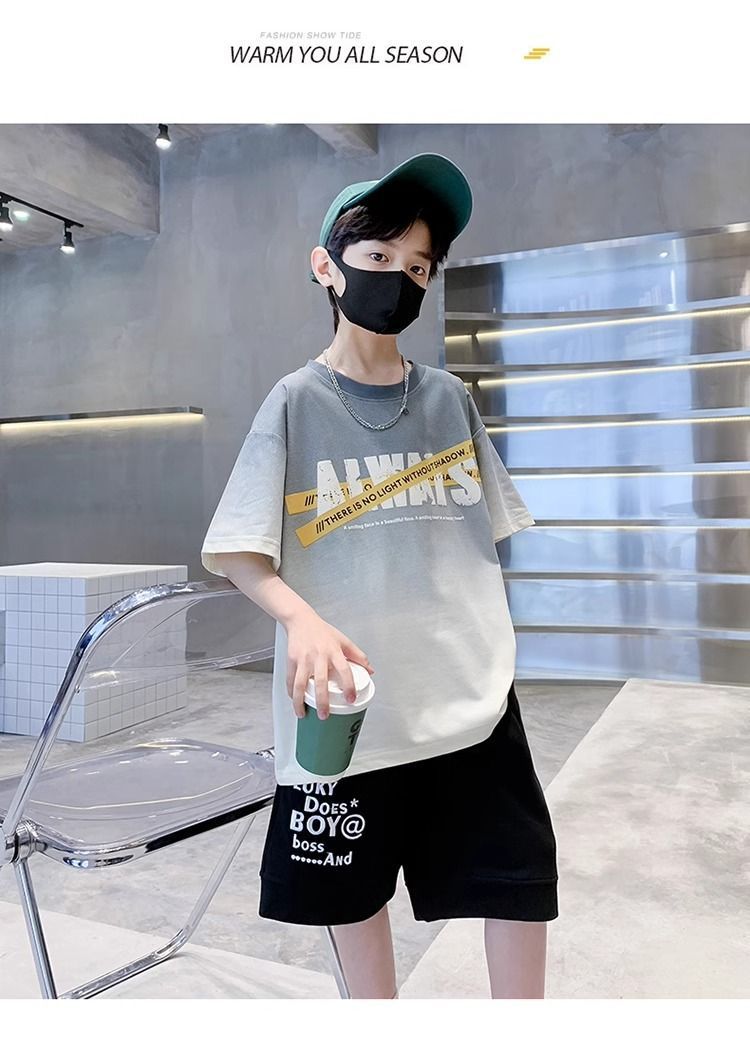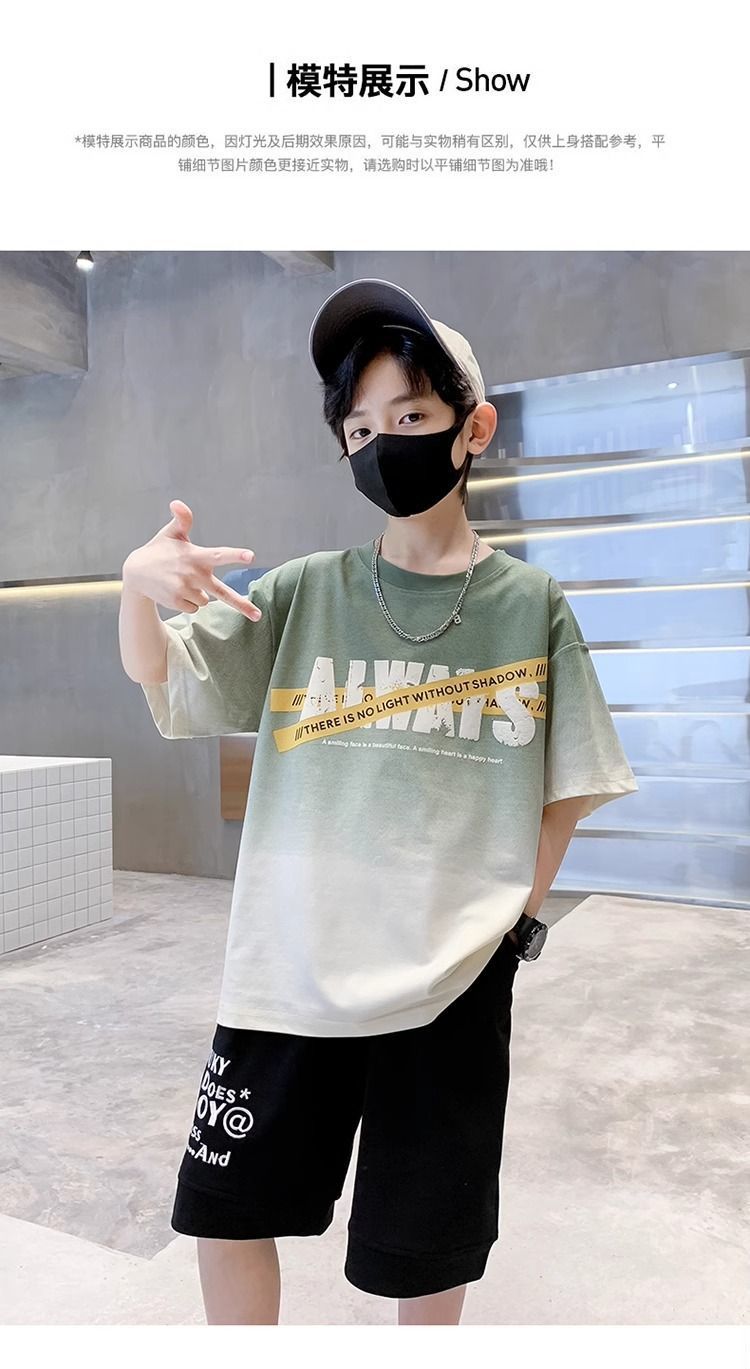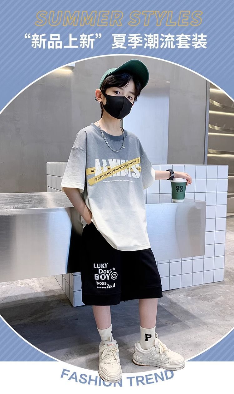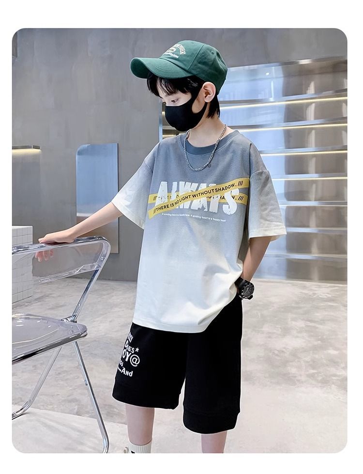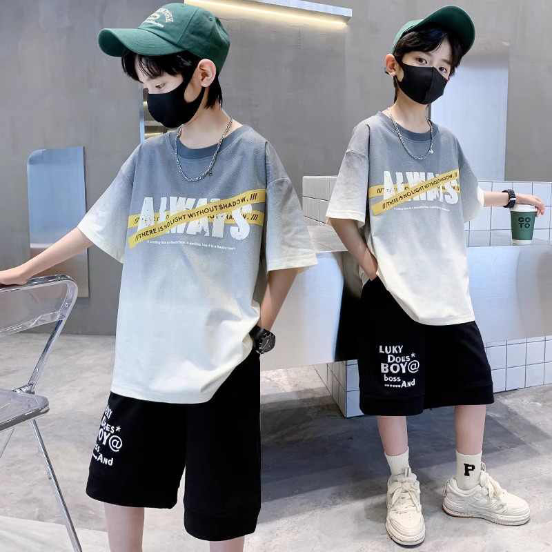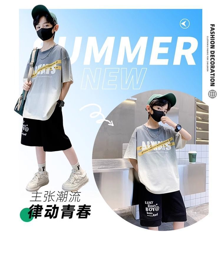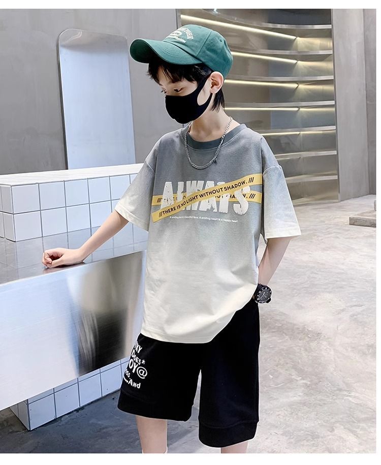 소년 반팔 티셔츠 학생 새로운 중대형 어린이 여름 옷 소년 면화 베이비 탑 아동 의류 유행 ins