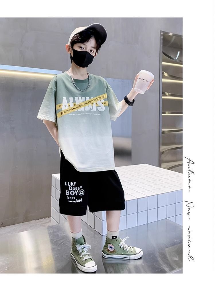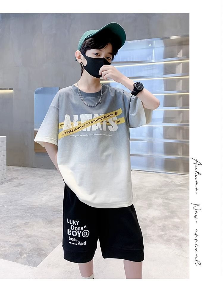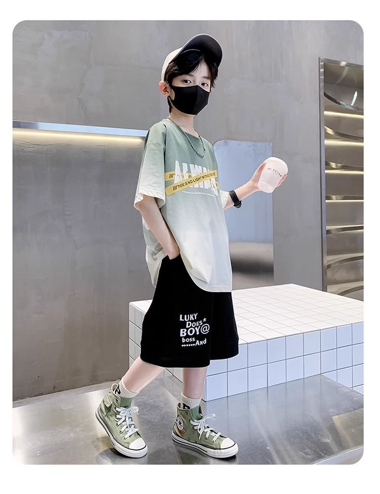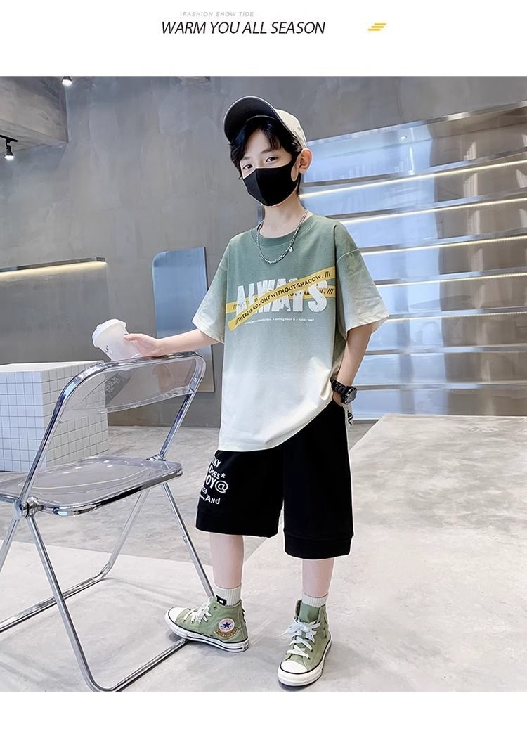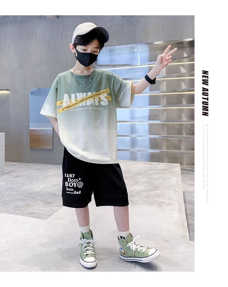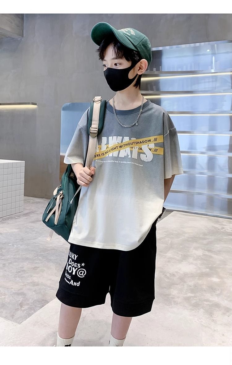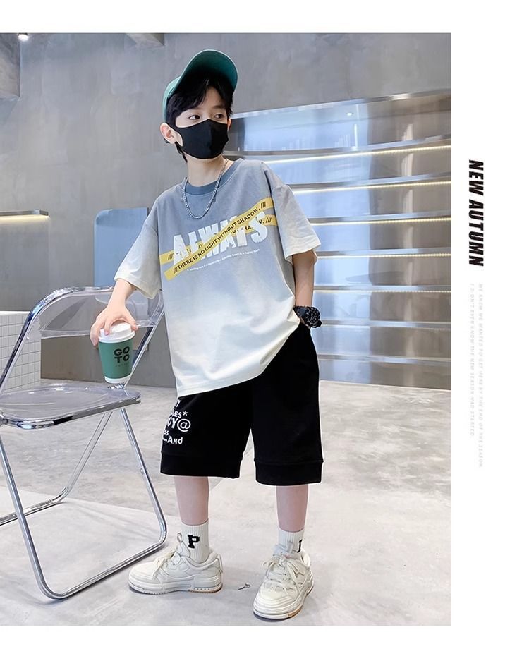 소년 반팔 티셔츠 학생 새로운 중대형 어린이 여름 옷 소년 면화 베이비 탑 아동 의류 유행 ins
