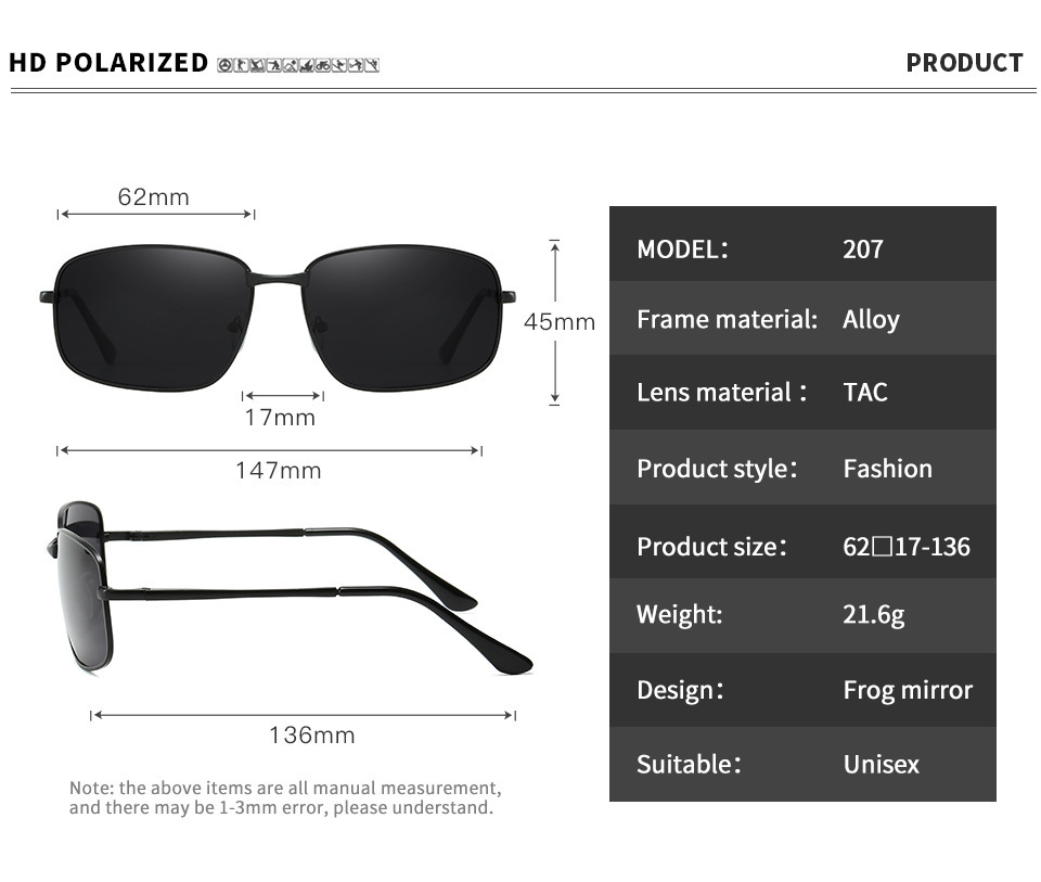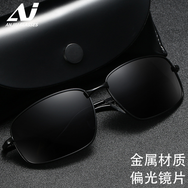 새로운 패션 금속 편광 선글라스 높은 센스 박스 선글라스 남성 운전 특수 드라이버 운전 거울
