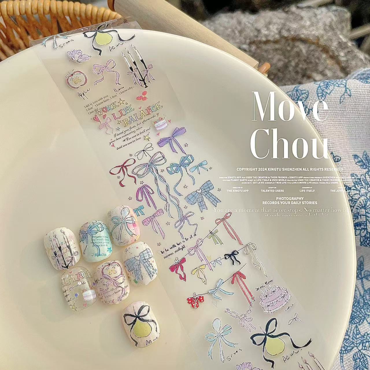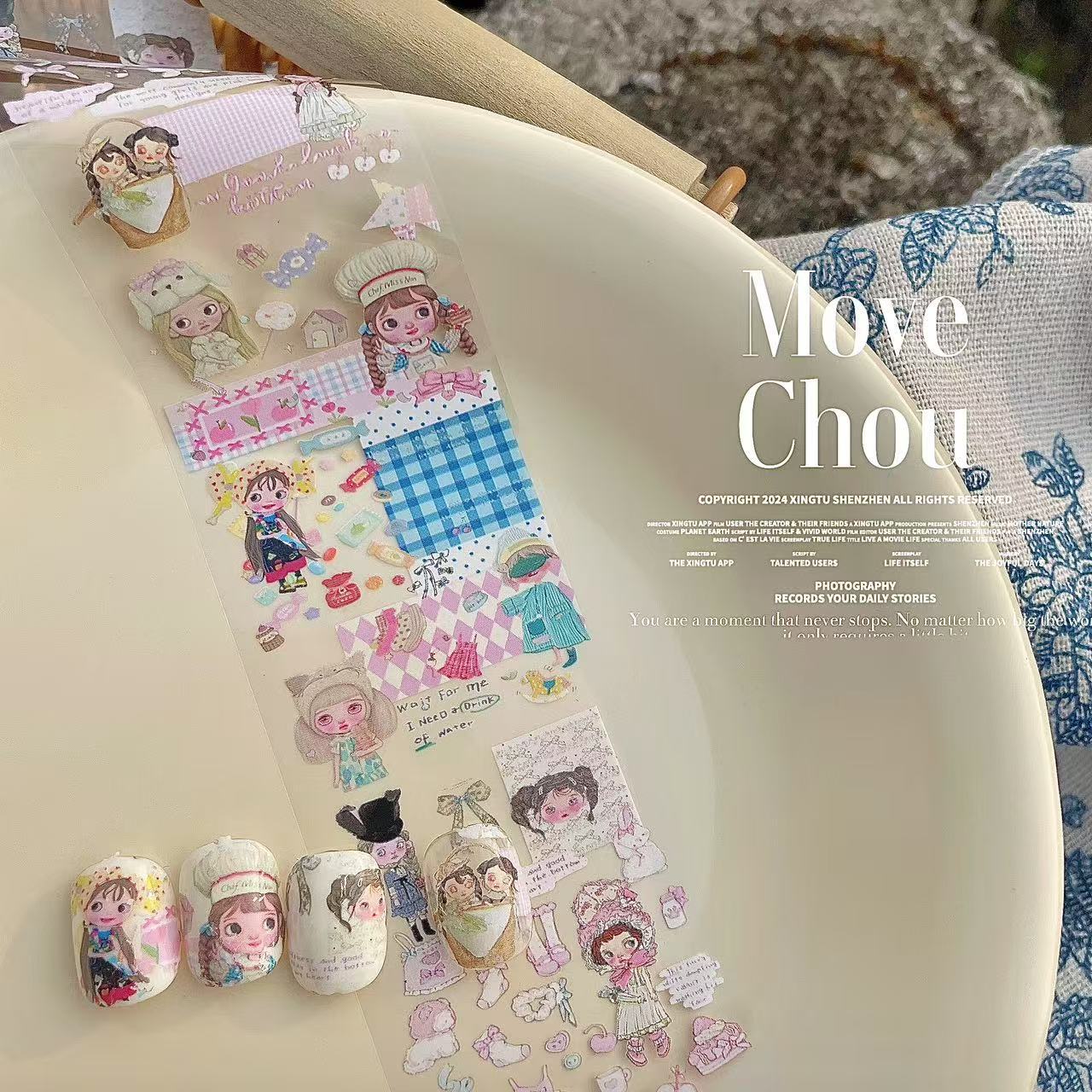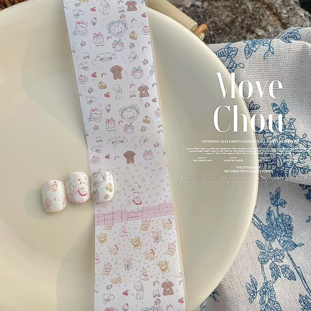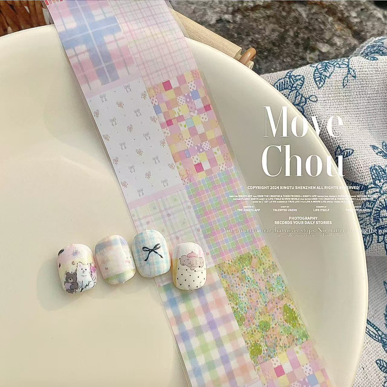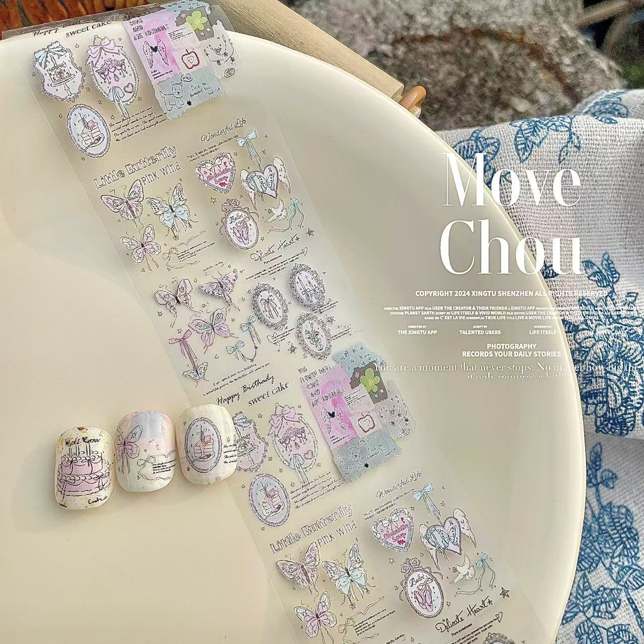 한풍은 손으로 그린 낙서 네일 아트 전송 종이 패치 워크 꽃 봄 예술 요소 귀여운 실용적인 그림