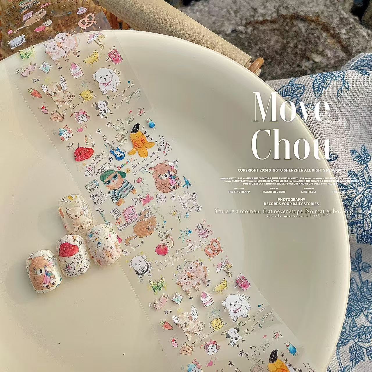 한풍은 손으로 그린 낙서 네일 아트 전송 종이 패치 워크 꽃 봄 예술 요소 귀여운 실용적인 그림스토어 가기