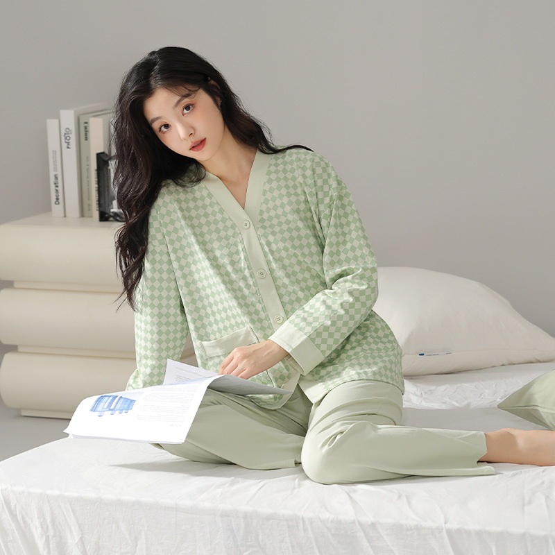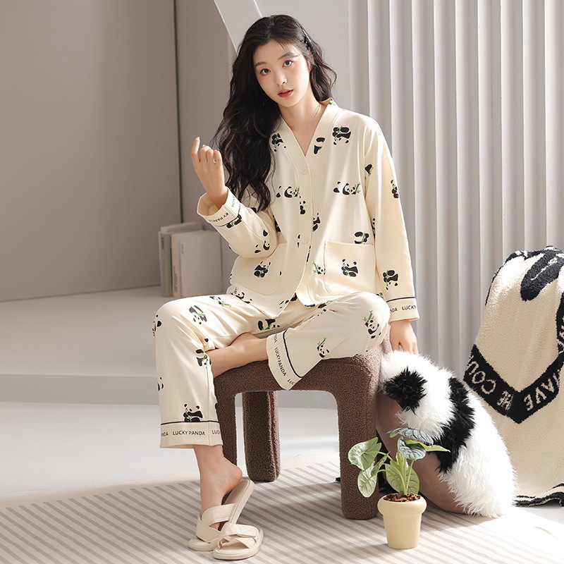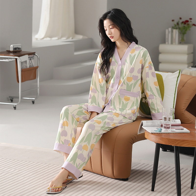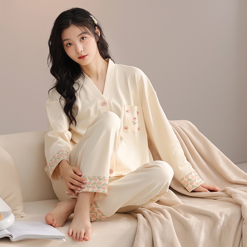 클래스 A 순면 여성 잠옷, 여성 가을 겨울 긴팔 바지 가디건, 고급 여아 면 가정복스토어 가기