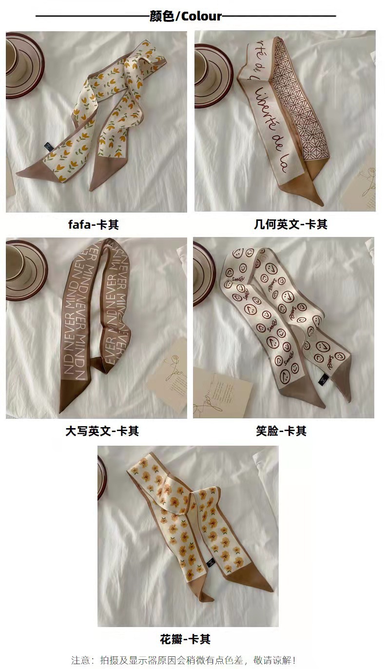 • 【격자무늬 시리즈●카키색 글자] 실크 스카프 1개