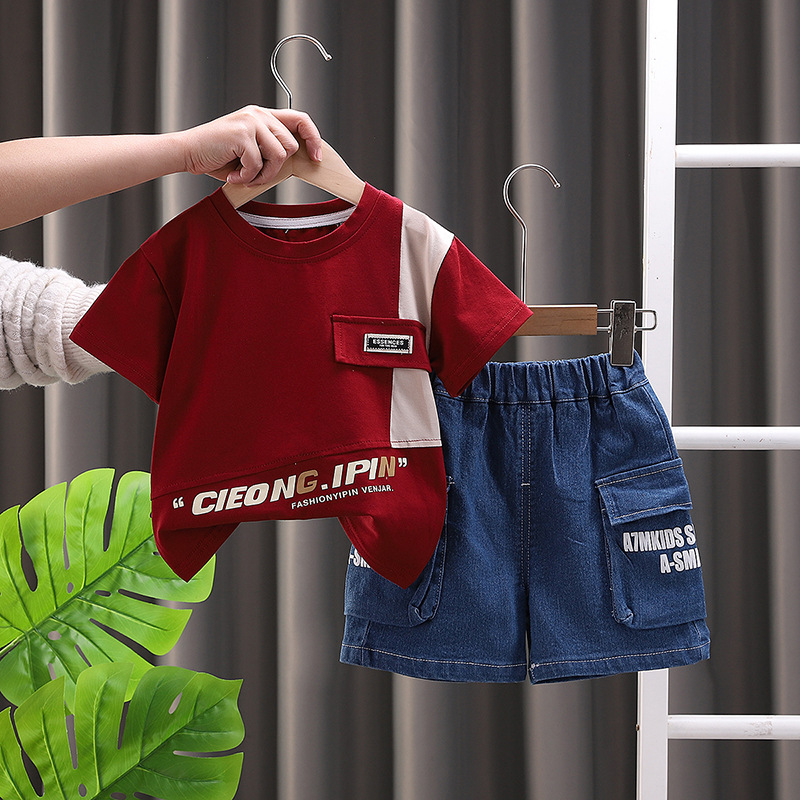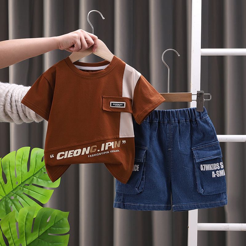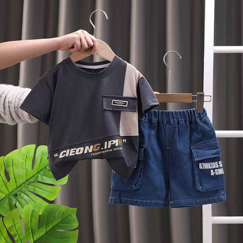 대외 무역 2025 여름 새로운 한국 소년 세트 캐주얼 반팔 티셔츠 세트 투피스 세트 소년의 아기 1-3 트렌디