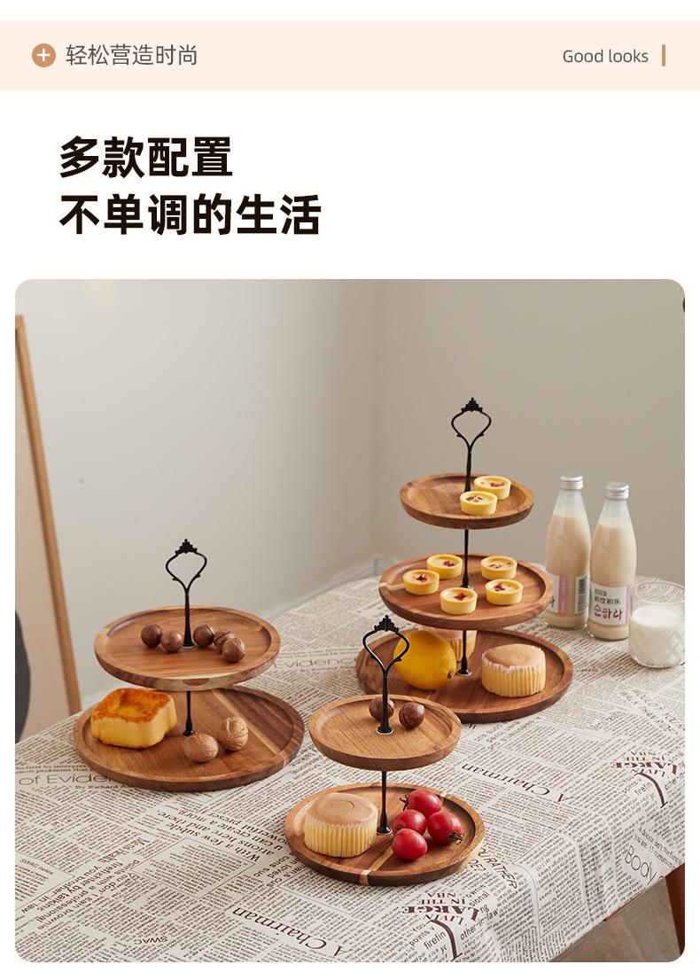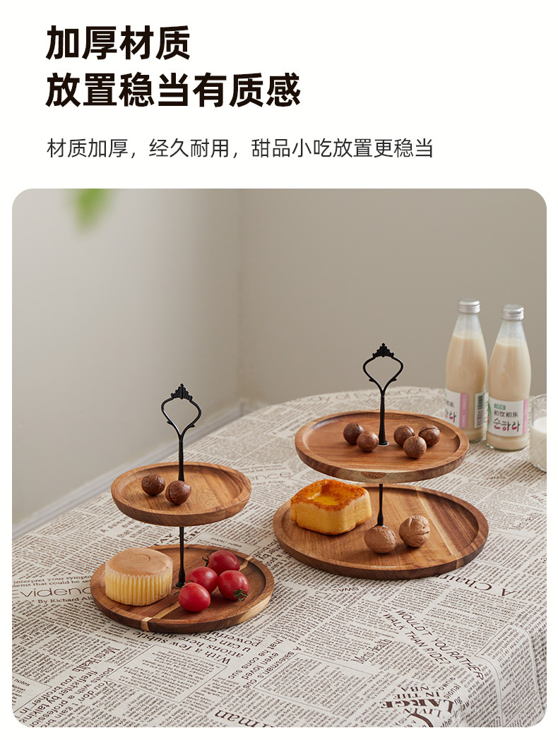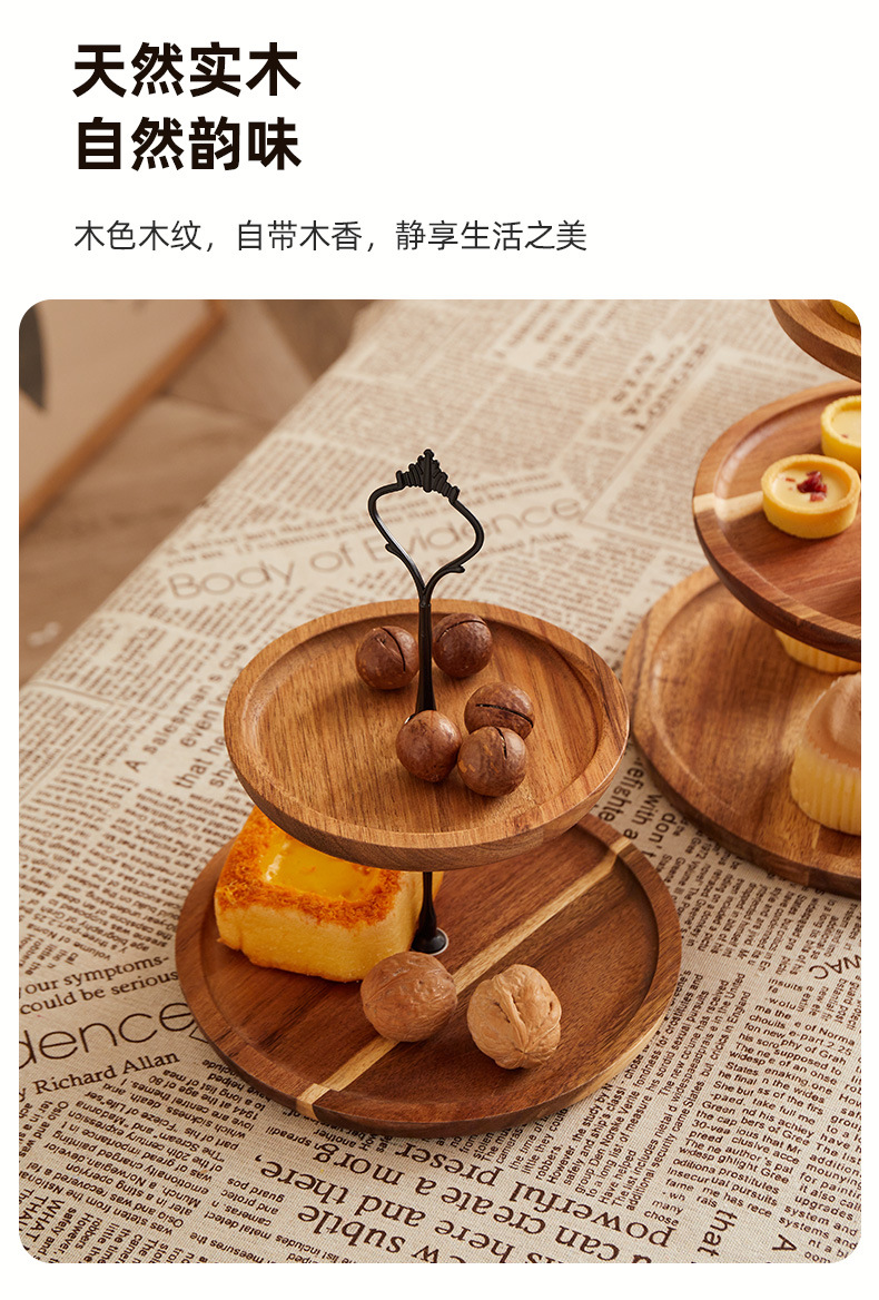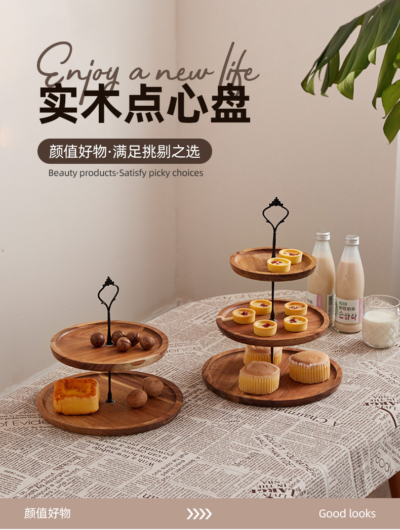 국경 간단한 더블 레이어 말린 과일 플레이트 테이블 거실 과일 저장 플레이트 3 층 사탕 스낵 트레이 다층 나무 플레이트