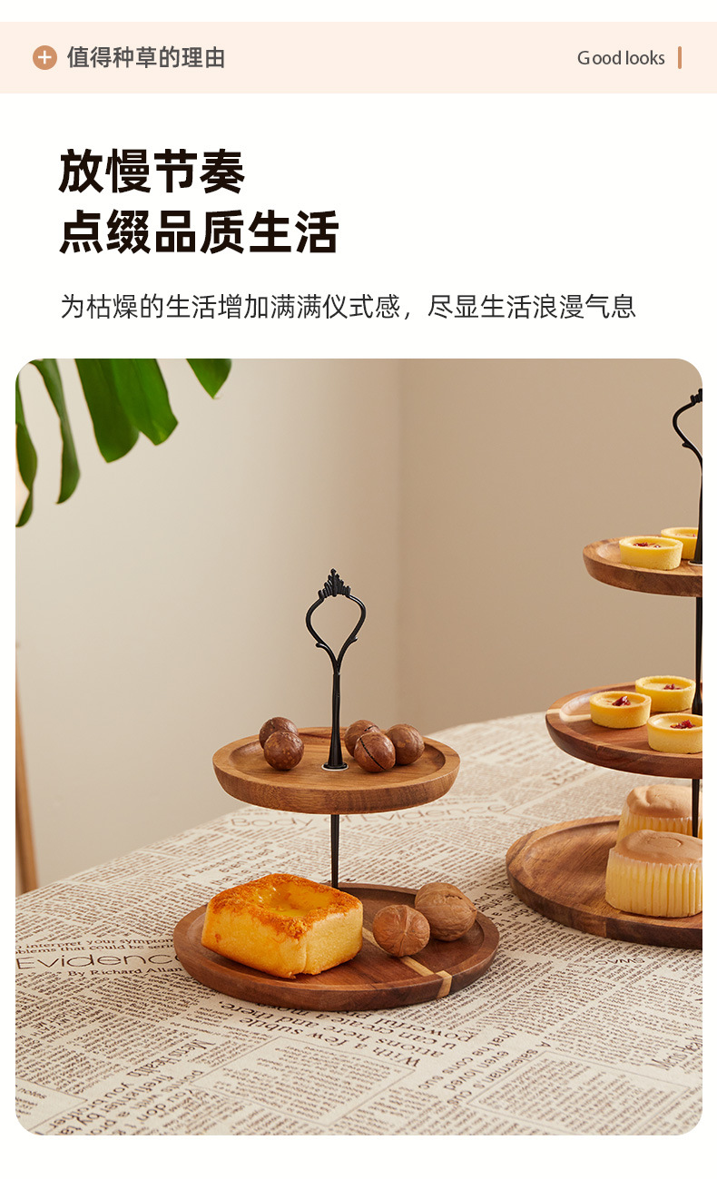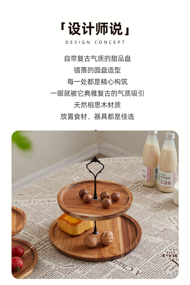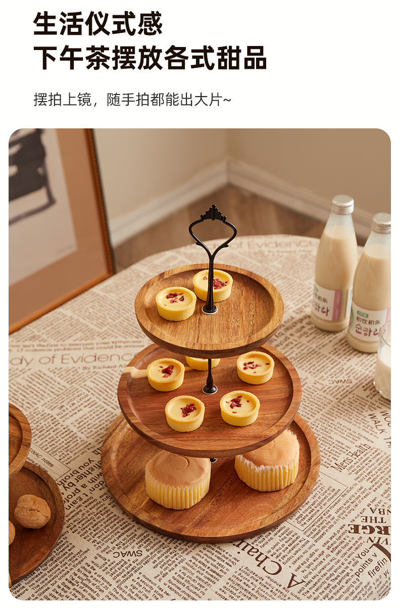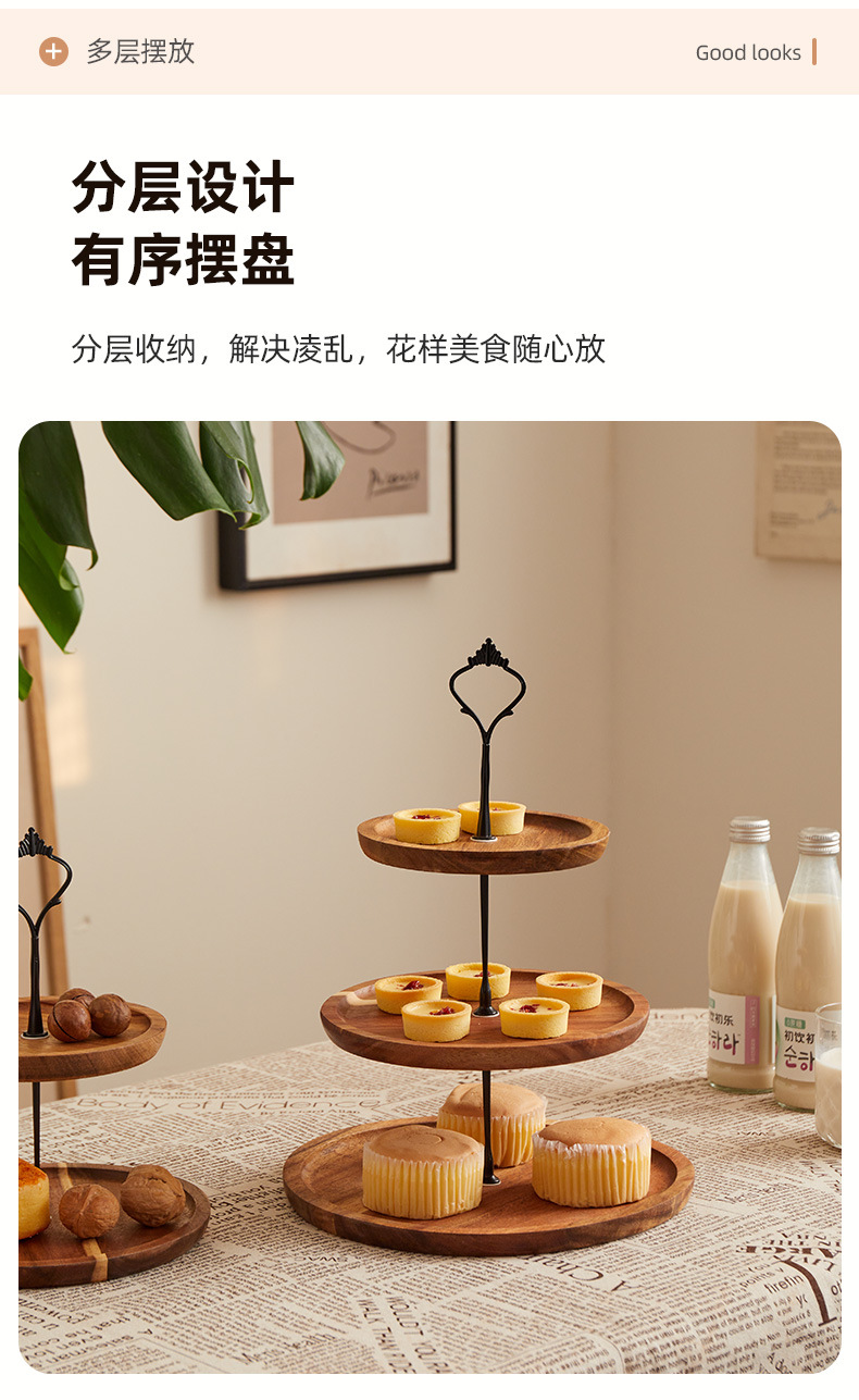 국경 간단한 더블 레이어 말린 과일 플레이트 테이블 거실 과일 저장 플레이트 3 층 사탕 스낵 트레이 다층 나무 플레이트