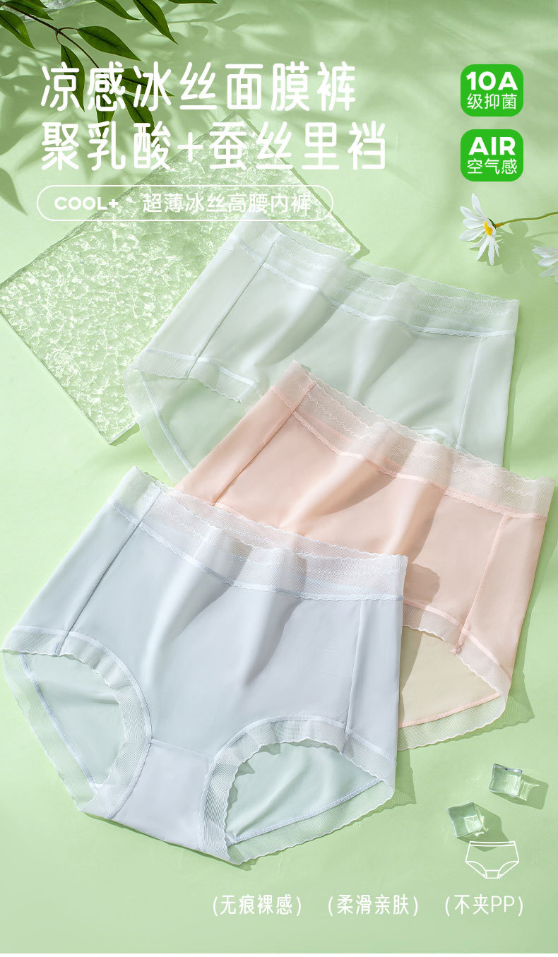 [맞춤형] 아이스 실크 여성 속옷 봄 여름 반바지 통기성과 편안한 하이 웨이스트 쿨링 소녀 팬티