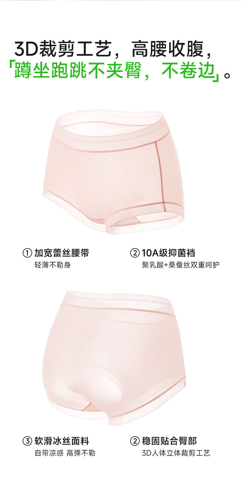 [맞춤형] 아이스 실크 여성 속옷 봄 여름 반바지 통기성과 편안한 하이 웨이스트 쿨링 소녀 팬티스토어 가기