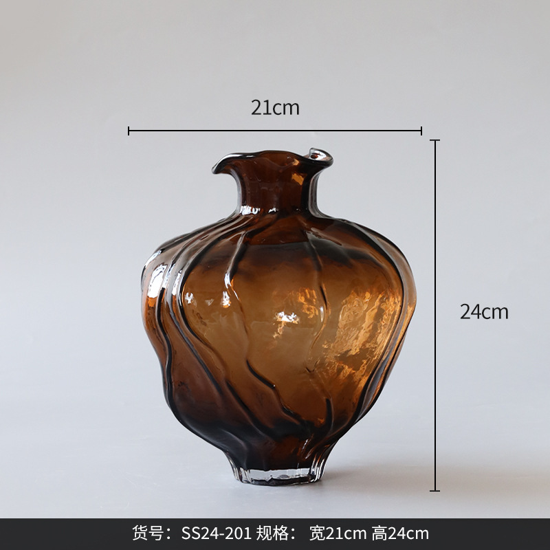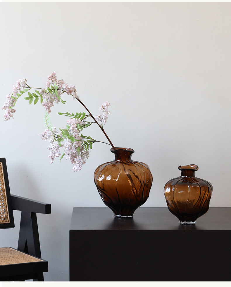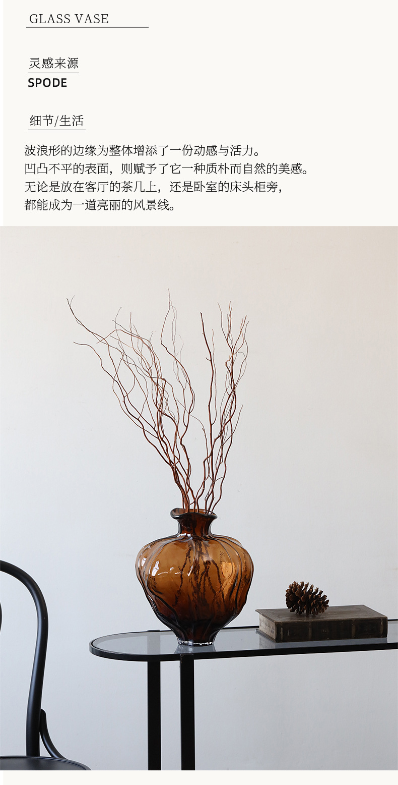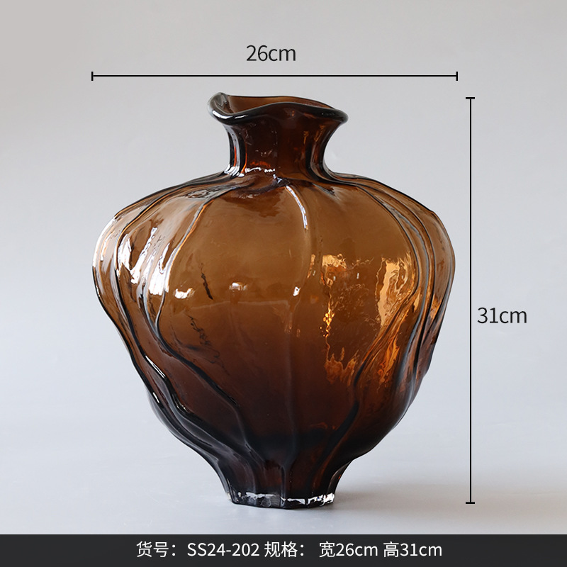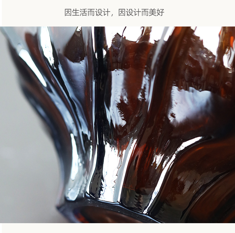 보시 홈 노르딕 수제 웨이브 입 레이스 새로운 다크 브라운 배 유리 꽃병 모델 거실 장식