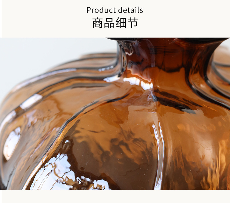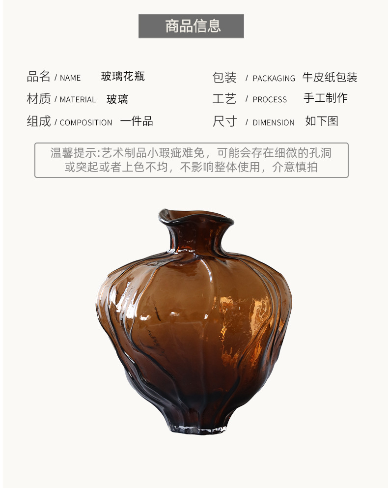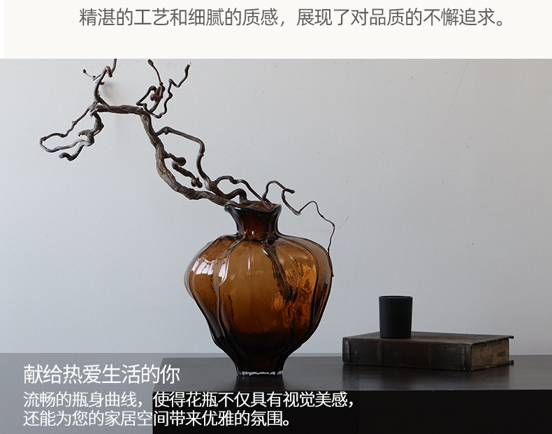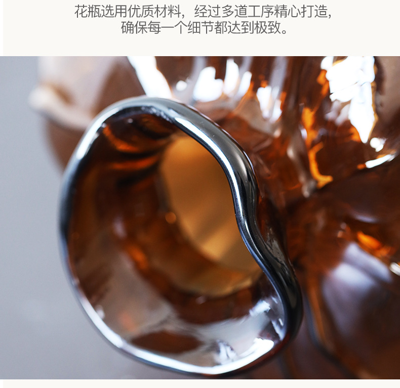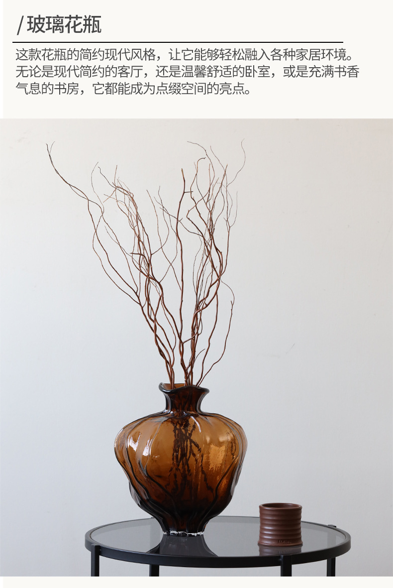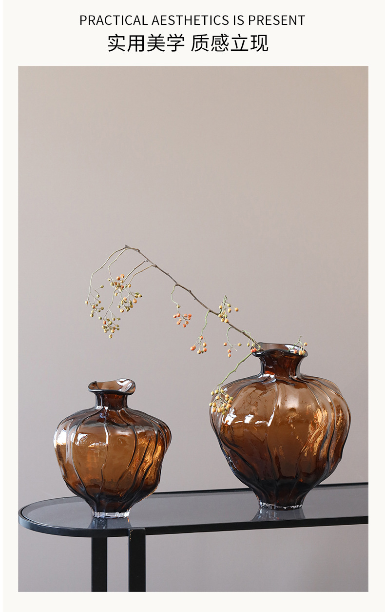보시 홈 노르딕 수제 웨이브 입 레이스 새로운 다크 브라운 배 유리 꽃병 모델 거실 장식