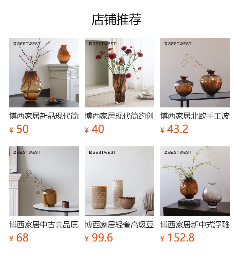 보시 홈 노르딕 수제 웨이브 입 레이스 새로운 다크 브라운 배 유리 꽃병 모델 거실 장식스토어 가기