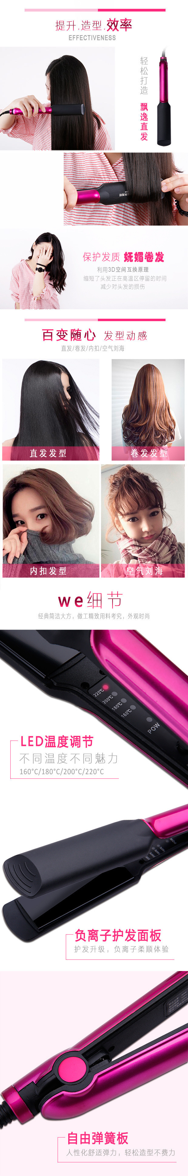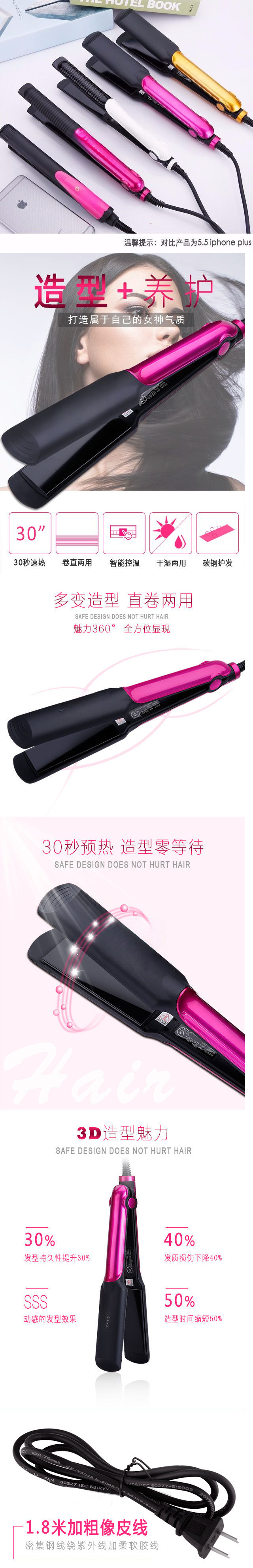 스플린트 스트레이트 롤 이중 목적 비 핫 헤어 스트레이트 너 스트레이트닝 플레이트 클립 앞머리 철 내부 버클 전기 컬링 아이언스토어 가기