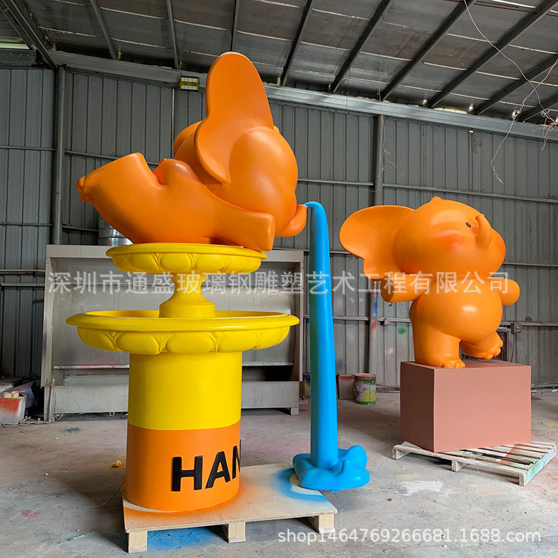 풍경 분수 모델 장식품 창조적 인 흐르는 물 유리 섬유 코끼리 유리 섬유 럭키 마스코트 동물 조각스토어 가기