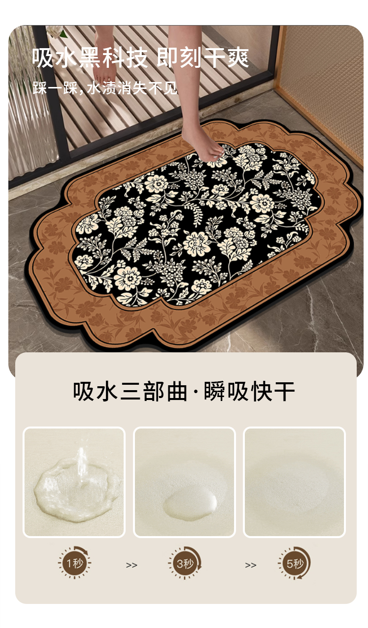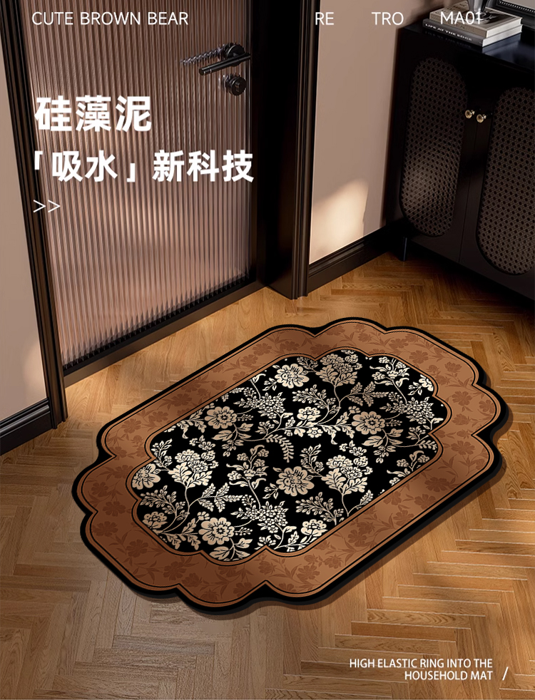 중간 골동품 욕실 바닥 매트 diatom 진흙 빠른 건조 흡수성 바닥 매트 화장실 문 미끄럼 방지 매트 내마모성 발 매트스토어 가기