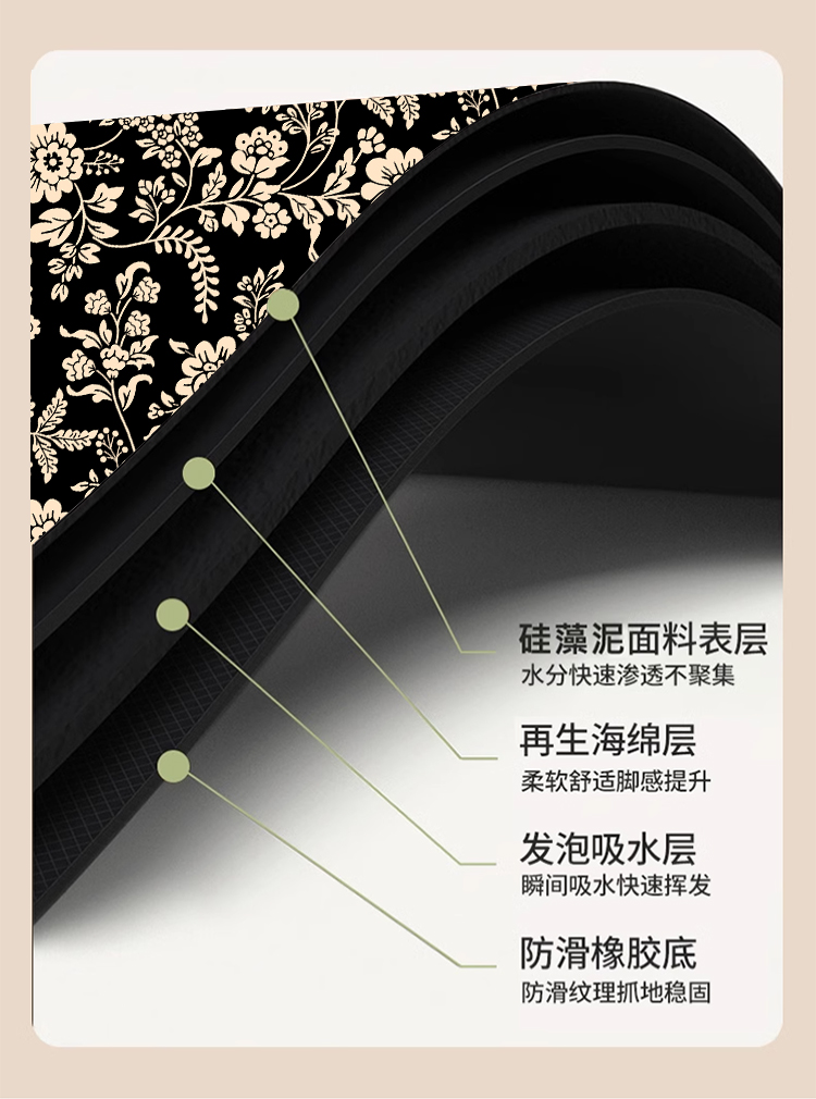 중간 골동품 욕실 바닥 매트 diatom 진흙 빠른 건조 흡수성 바닥 매트 화장실 문 미끄럼 방지 매트 내마모성 발 매트