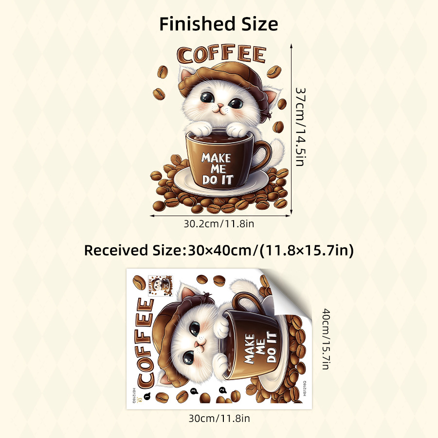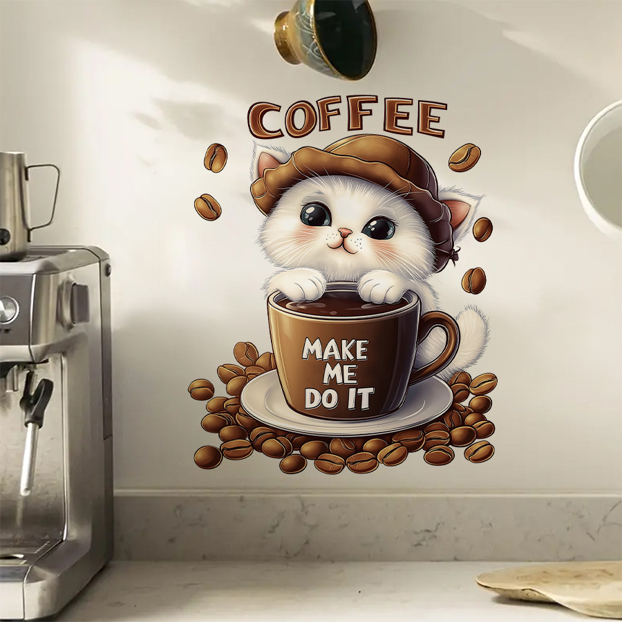 HS1216Q 귀여운 커피 콩 고양이 자기 접착 벽 스티커 카페 바 데스크 연구 주방 냉장고 장식 스티커