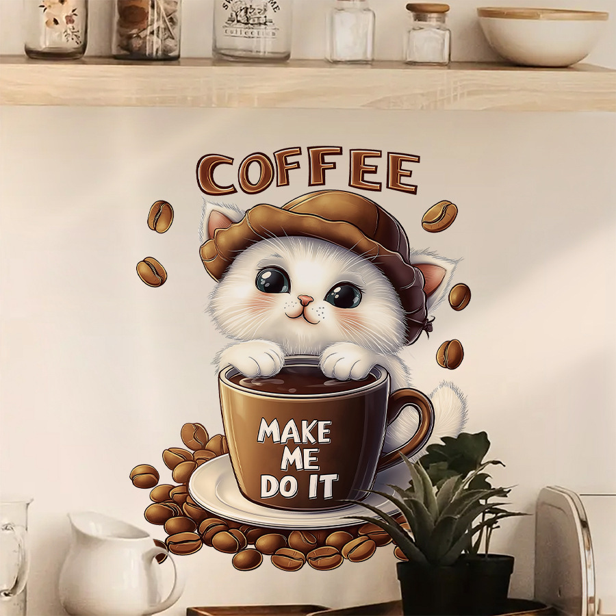 HS1216Q 귀여운 커피 콩 고양이 자기 접착 벽 스티커 카페 바 데스크 연구 주방 냉장고 장식 스티커스토어 가기
