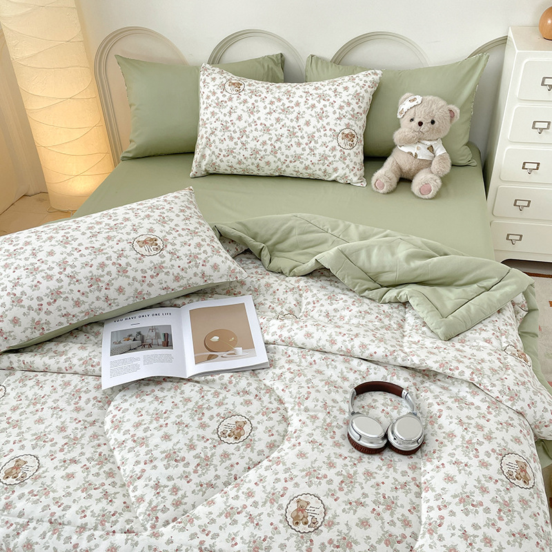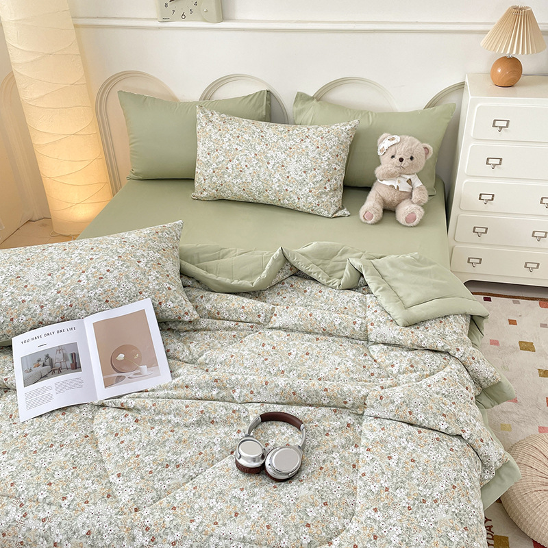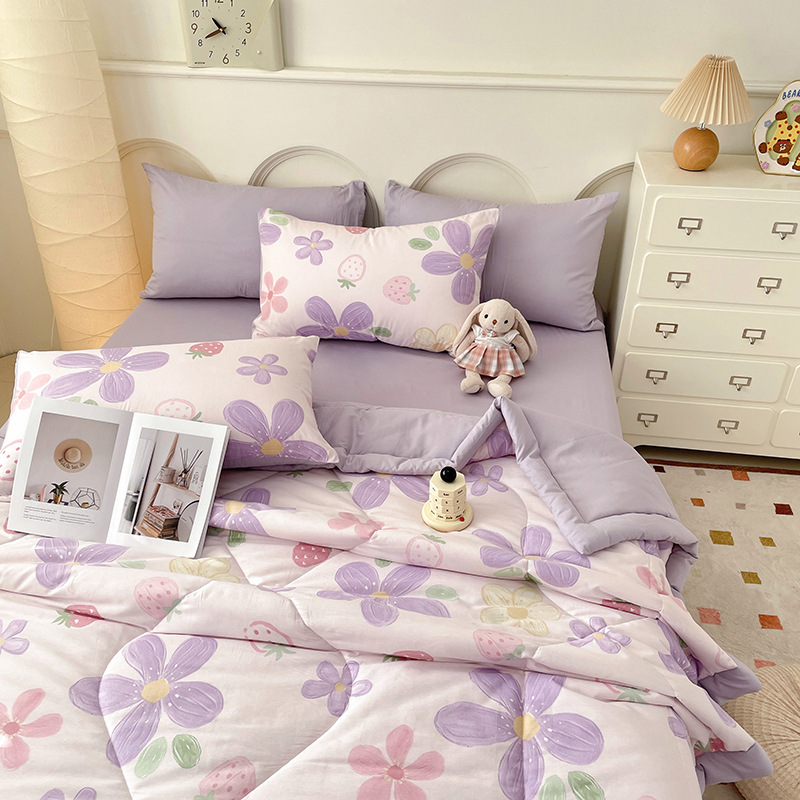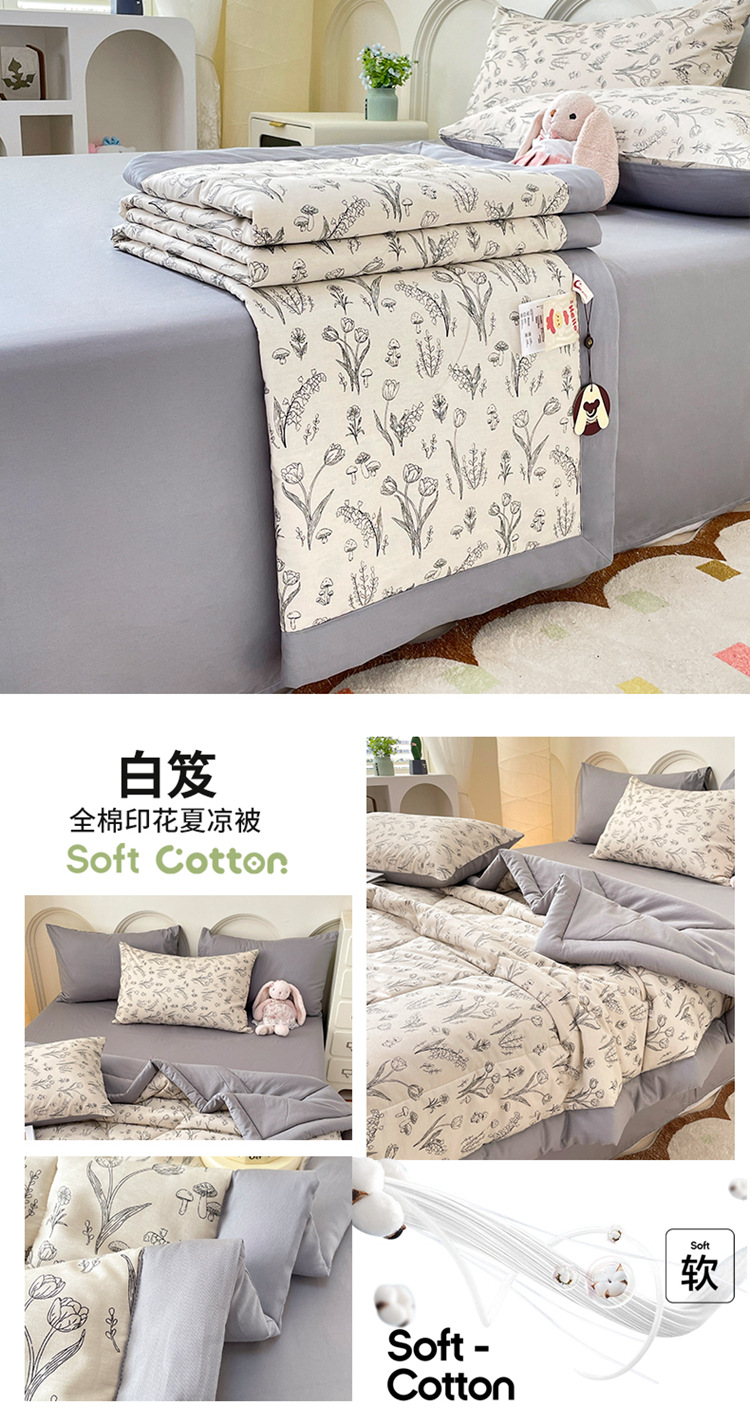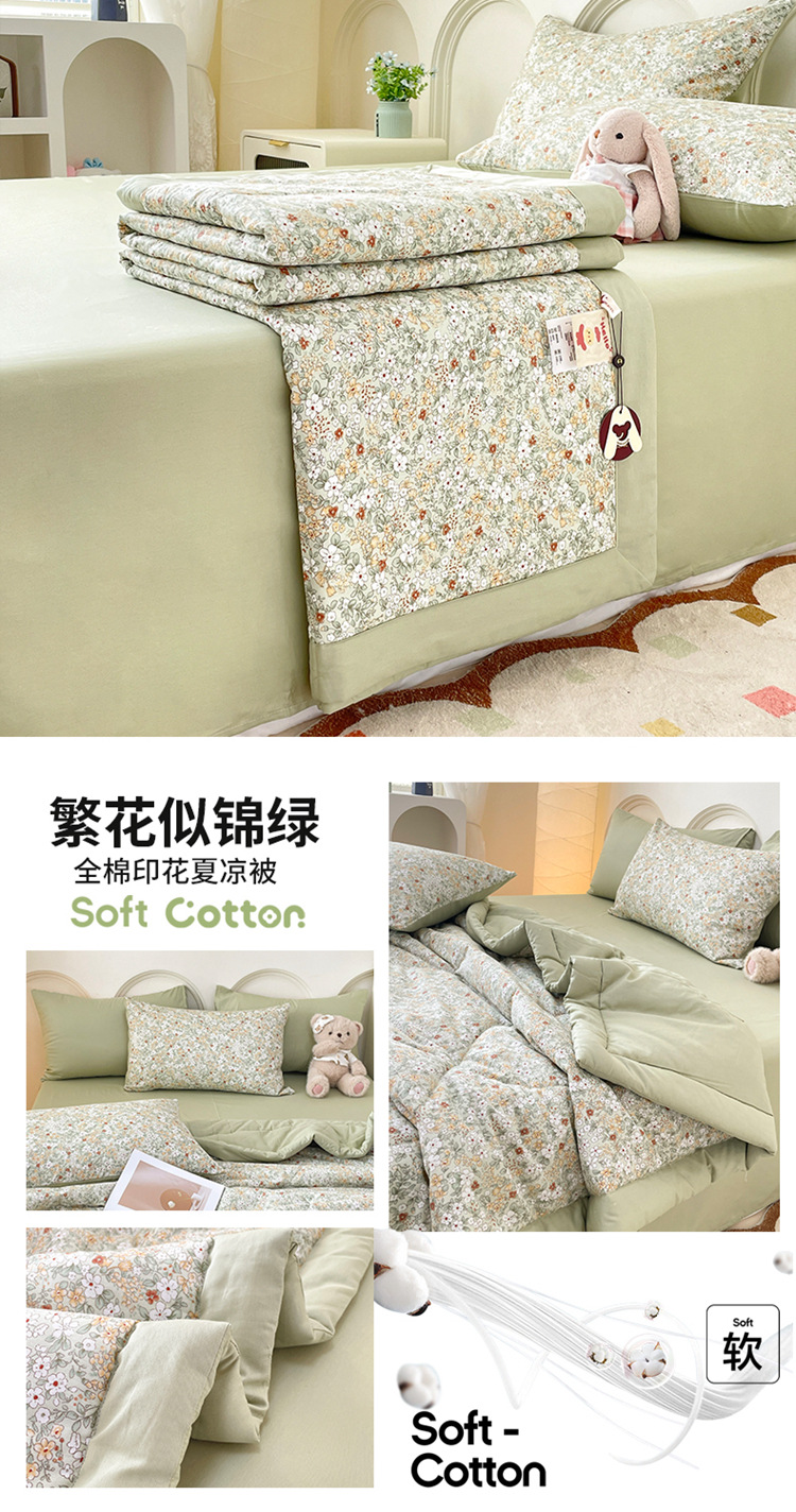 2025 새로운 면 더블 여름 이불 꽃 신선한 면화 싱글 여름 이불 4 종 세트 여름 이불 3 종 세트