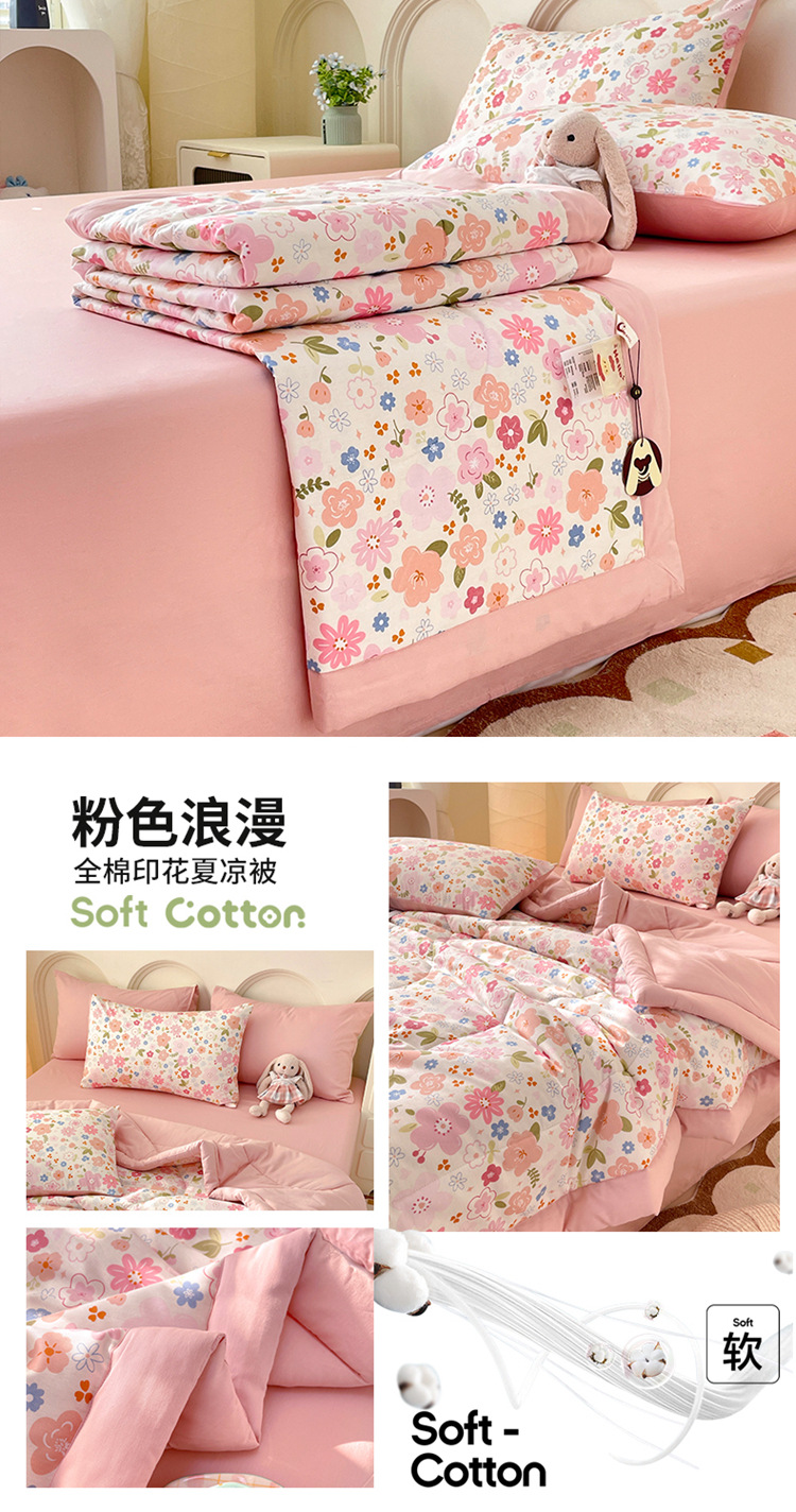 2025 새로운 면 더블 여름 이불 꽃 신선한 면화 싱글 여름 이불 4 종 세트 여름 이불 3 종 세트스토어 가기
