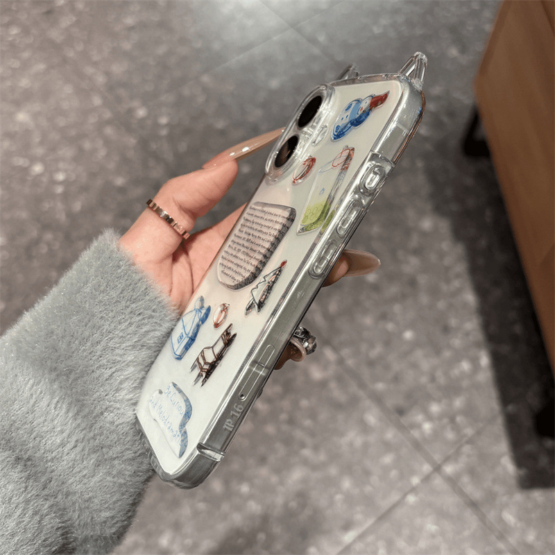 DIY 피부 고양이 귀 TPU iPhone16promax 전화 케이스 15pro 투명한 미세 구멍 케이스스토어 가기