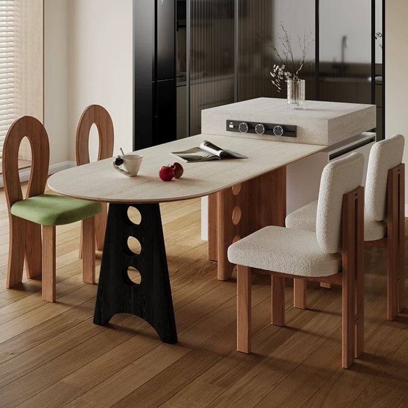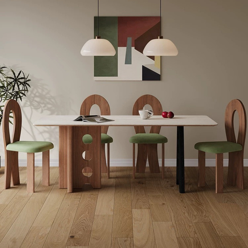 중간 고대 스타일 식탁 현대 작은 아파트 가구 프랑스 스타일 돌 바위 보드 거실 벽 단단한 나무 식탁 및 의자 조합