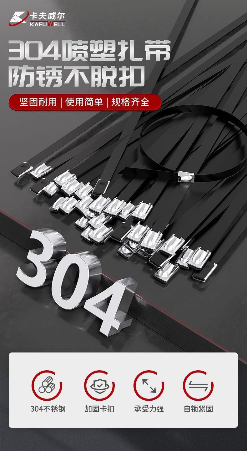카프웰 스테인레스 스틸 케이블 타이 표면 블랙 에폭시 냉간 저항하는 고온 스트래핑 로프 기계 수리스토어 가기