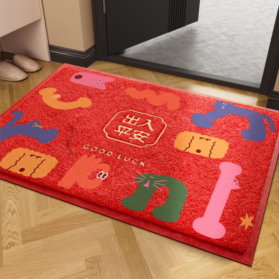 가내 안전 바닥 매트 실크 링 레드 하이 레벨 입구 미끄럼 방지 매트 출입구 현관 내마모성 문지름 매트