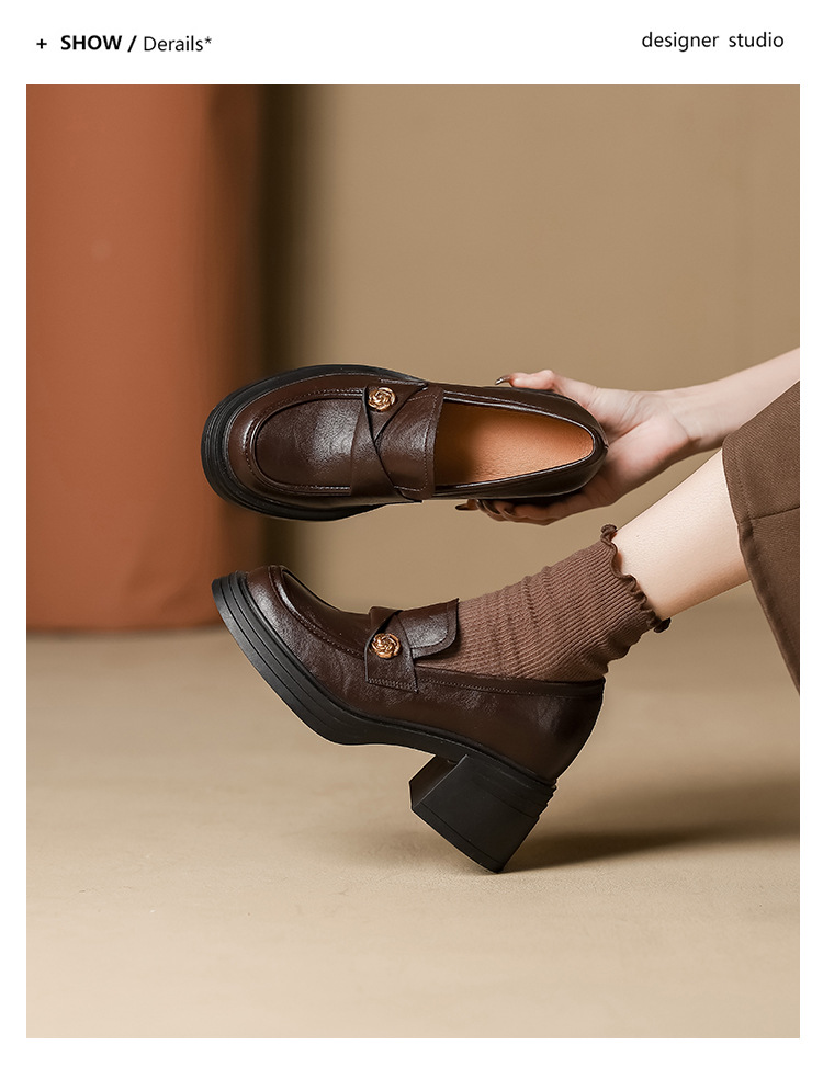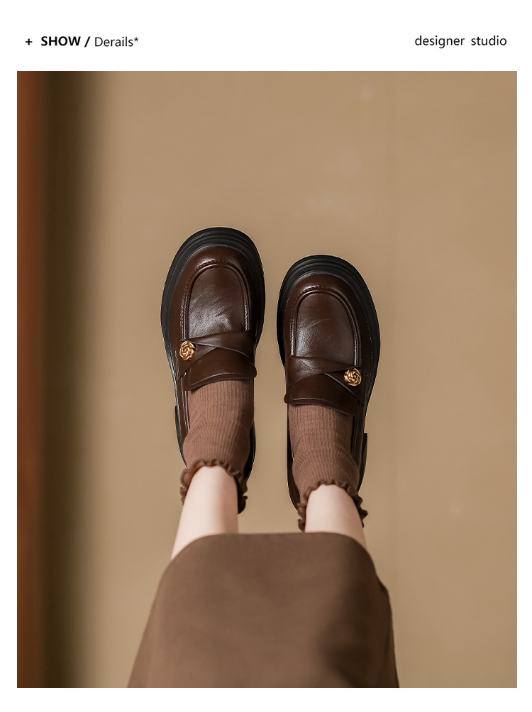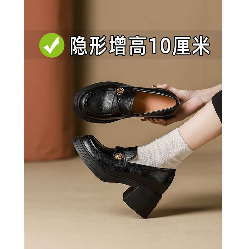 여성 2025 신발 새로운 두꺼운 밑창 여성 영국식 작은 가죽 신발 프렌치 레트로 메리 제인 높이 증가 여성 신발스토어 가기