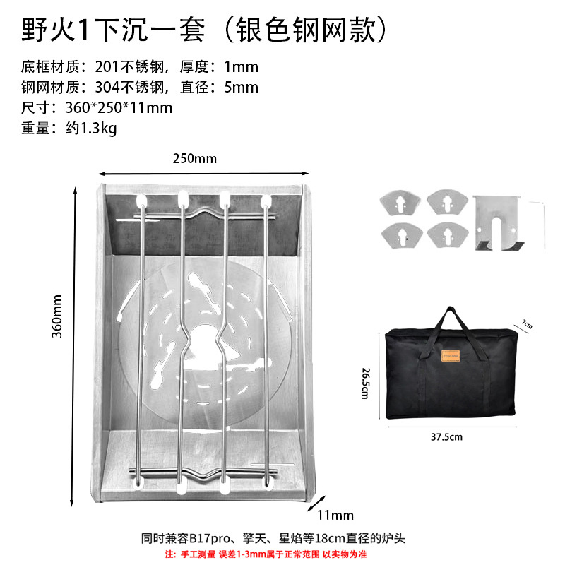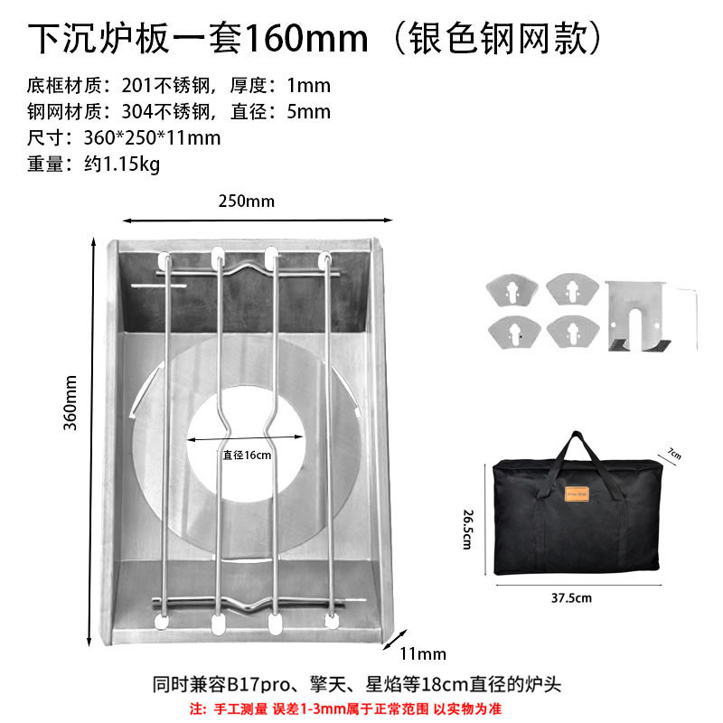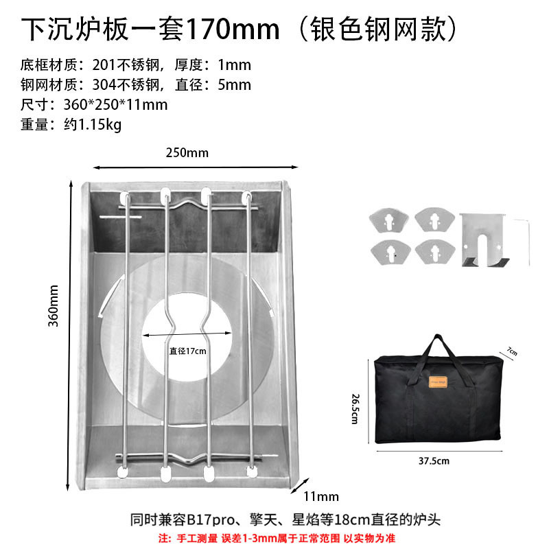 야외 캠핑 IGT 싱크형 액세서리 블루린 B17 싱크형 실버 스틸 메쉬 야외 화로 2구 화로