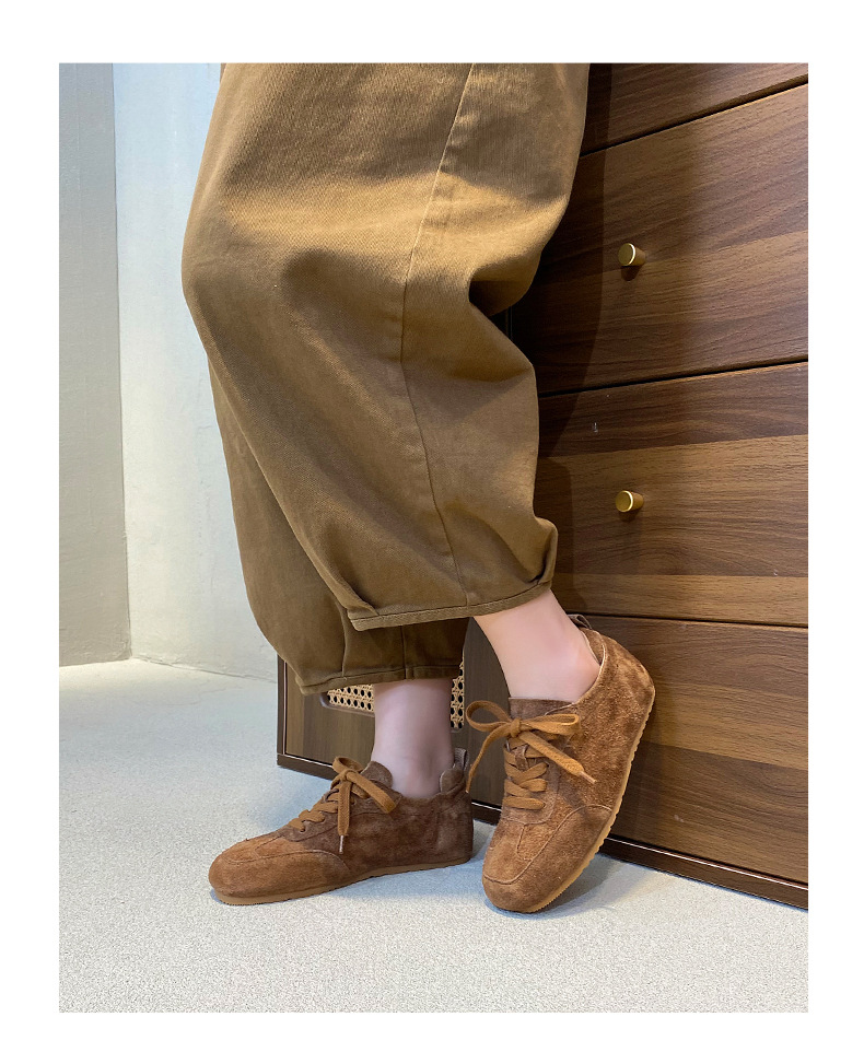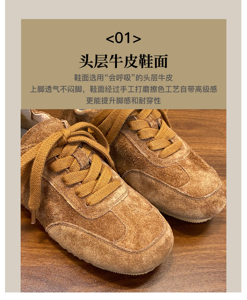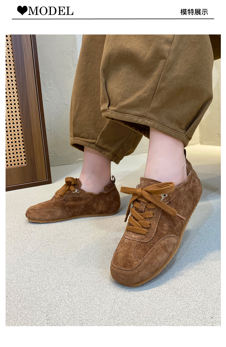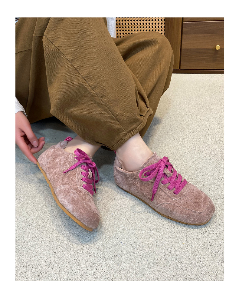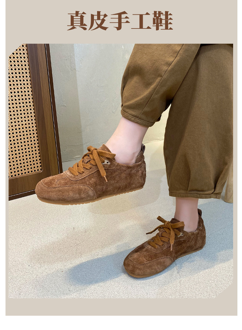 가죽 추악한 사랑스러운 훈련 신발 플랫 여성 신발 2025 새로운 가죽 레이스 업 보켄 신발 스포츠 캐주얼 슈즈의 첫 번째 레이어