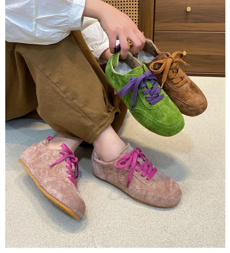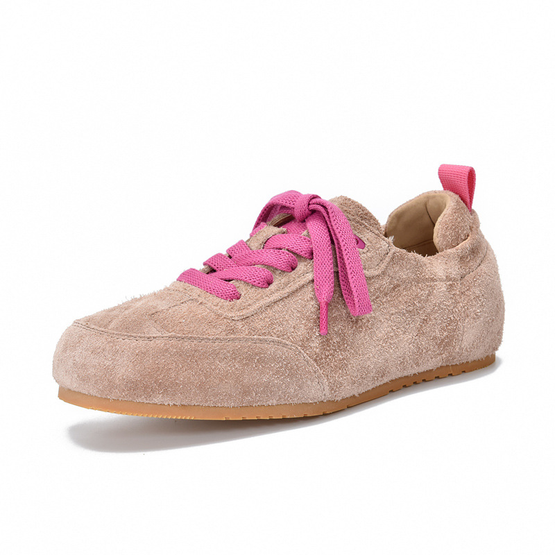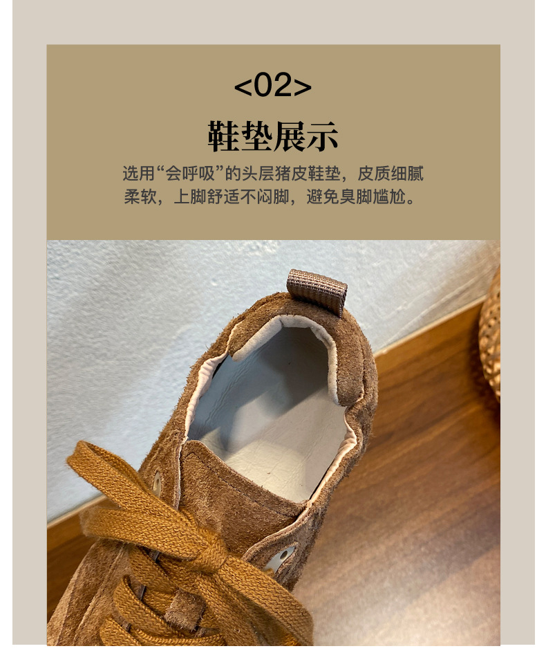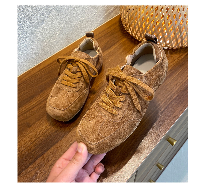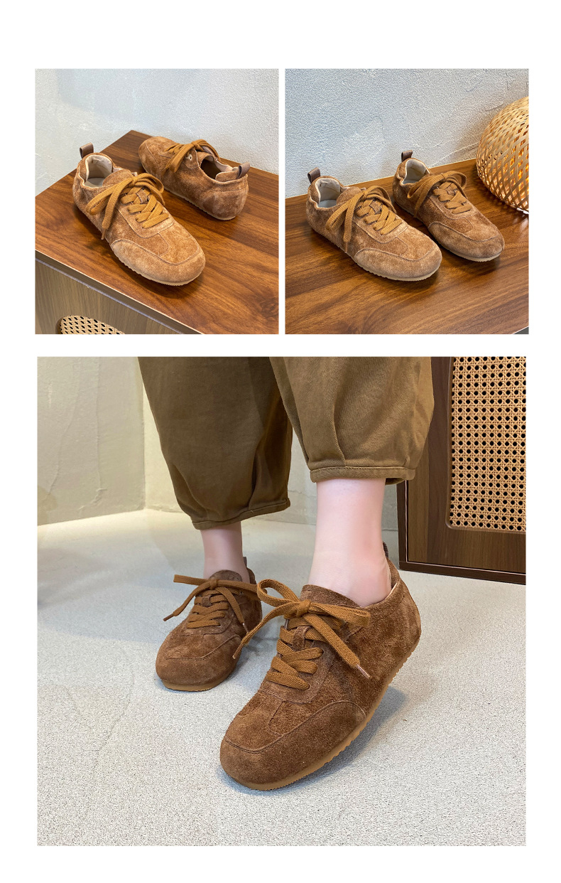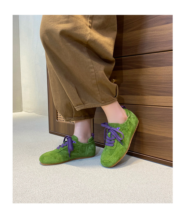 가죽 추악한 사랑스러운 훈련 신발 플랫 여성 신발 2025 새로운 가죽 레이스 업 보켄 신발 스포츠 캐주얼 슈즈의 첫 번째 레이어