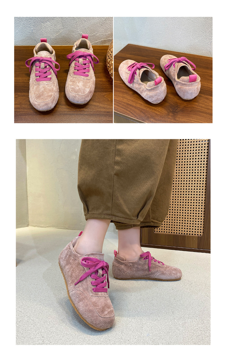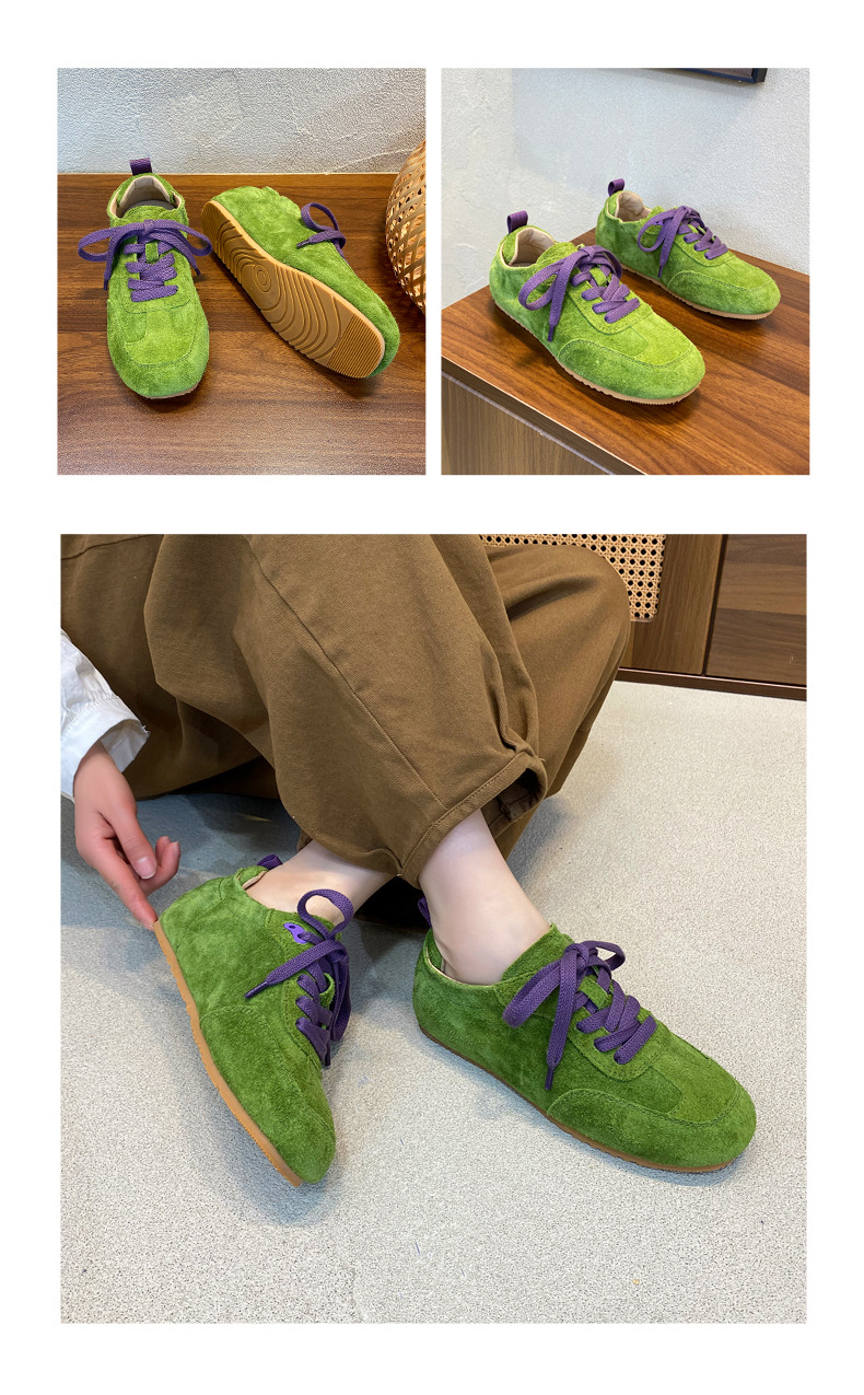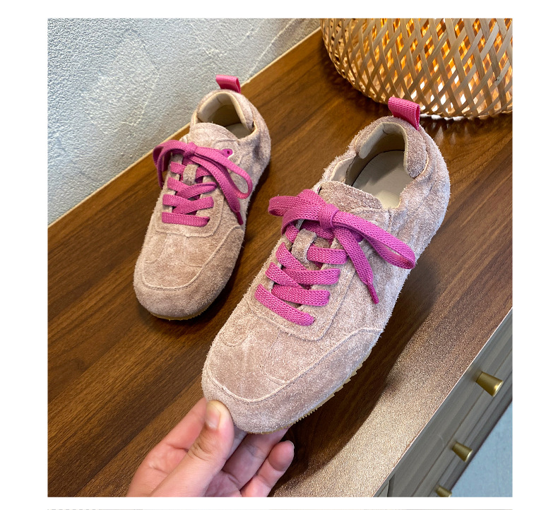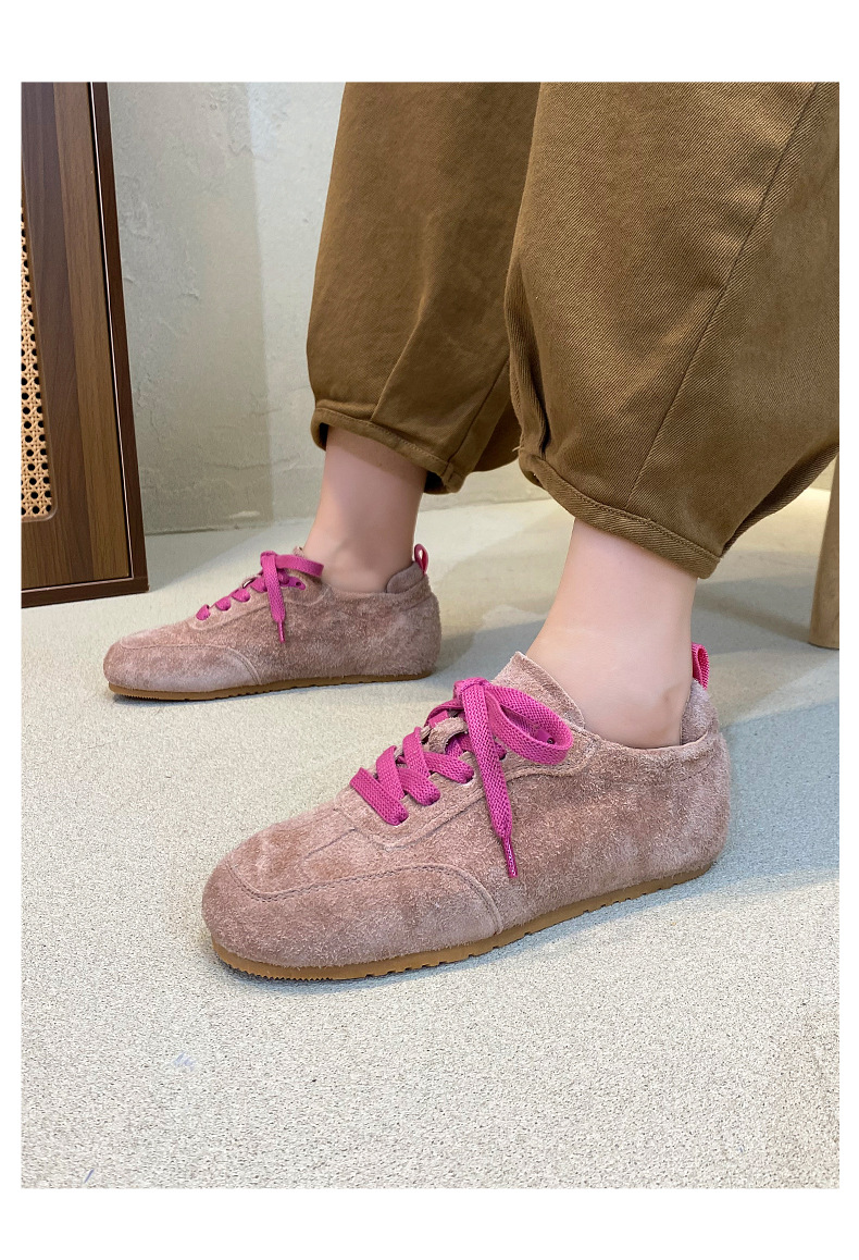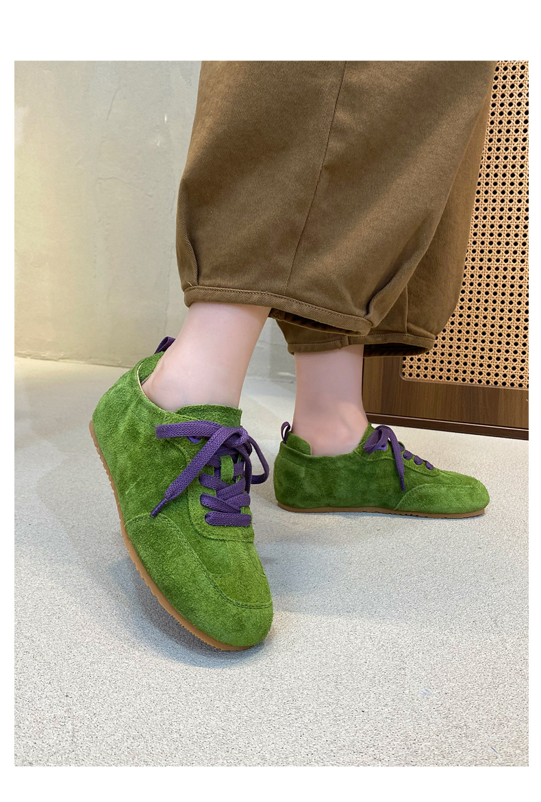 가죽 추악한 사랑스러운 훈련 신발 플랫 여성 신발 2025 새로운 가죽 레이스 업 보켄 신발 스포츠 캐주얼 슈즈의 첫 번째 레이어
