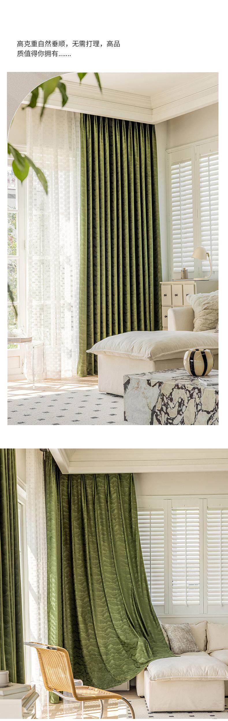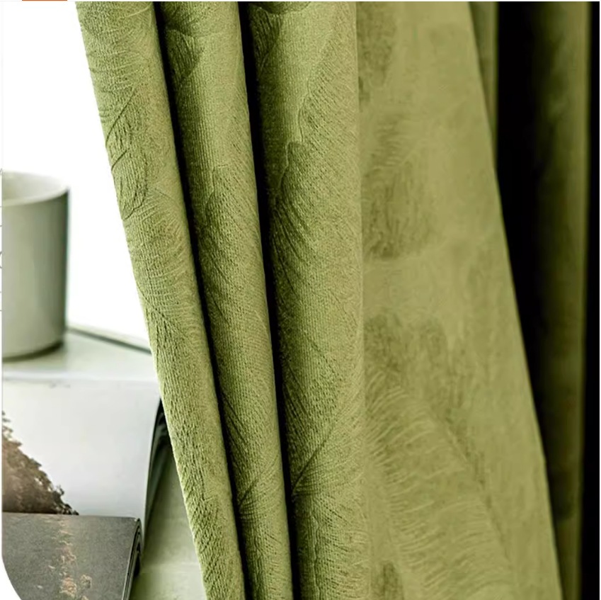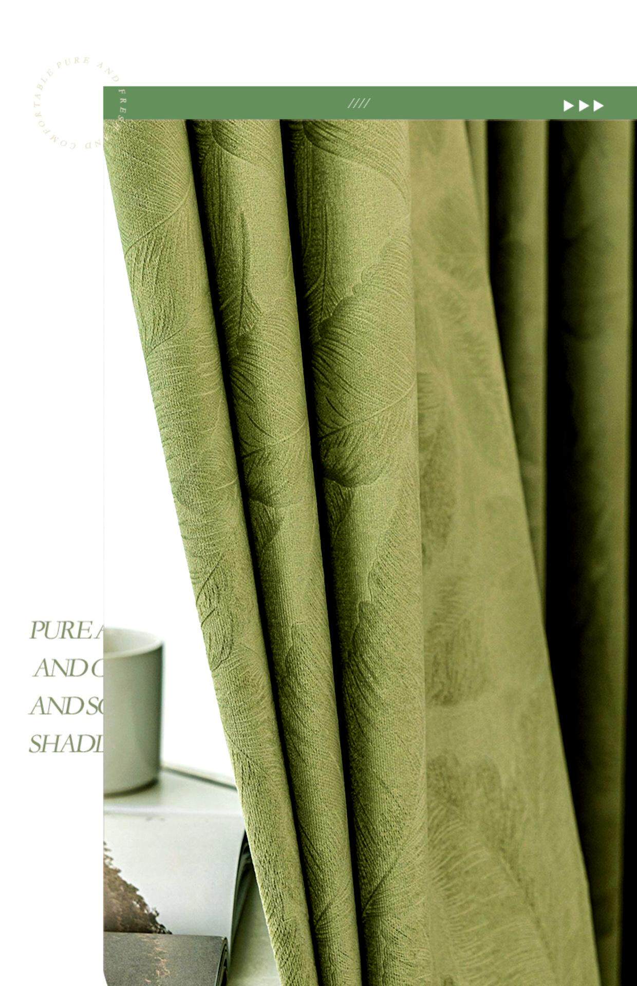 커튼 음영 거실 침실 라이트 럭셔리 올리브 그린 프렌치 커튼 아메리칸 레트로 플란넬 베이 창 새로운 녹색 단열