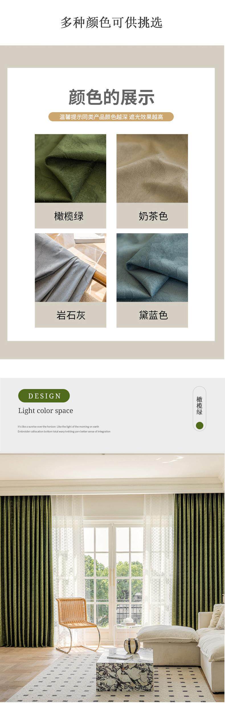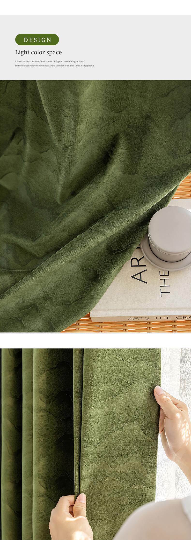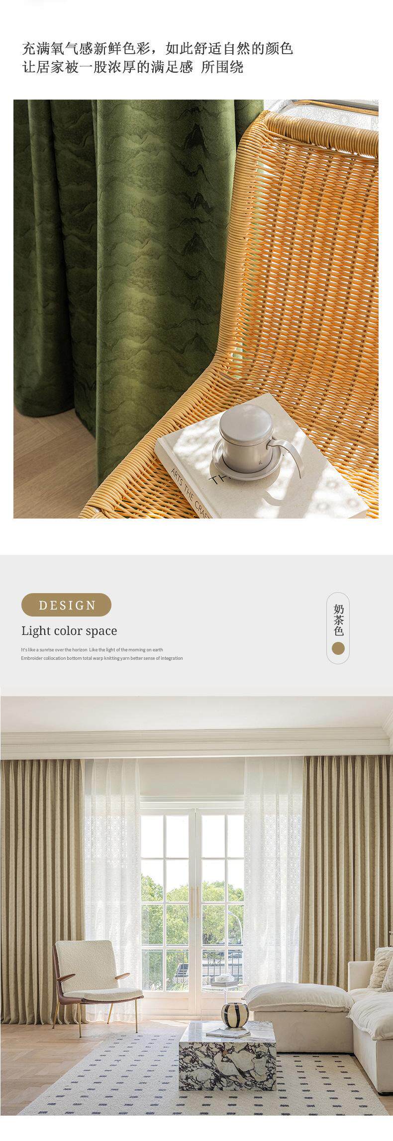 커튼 음영 거실 침실 라이트 럭셔리 올리브 그린 프렌치 커튼 아메리칸 레트로 플란넬 베이 창 새로운 녹색 단열
